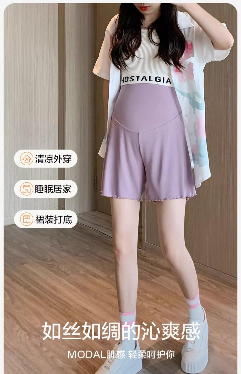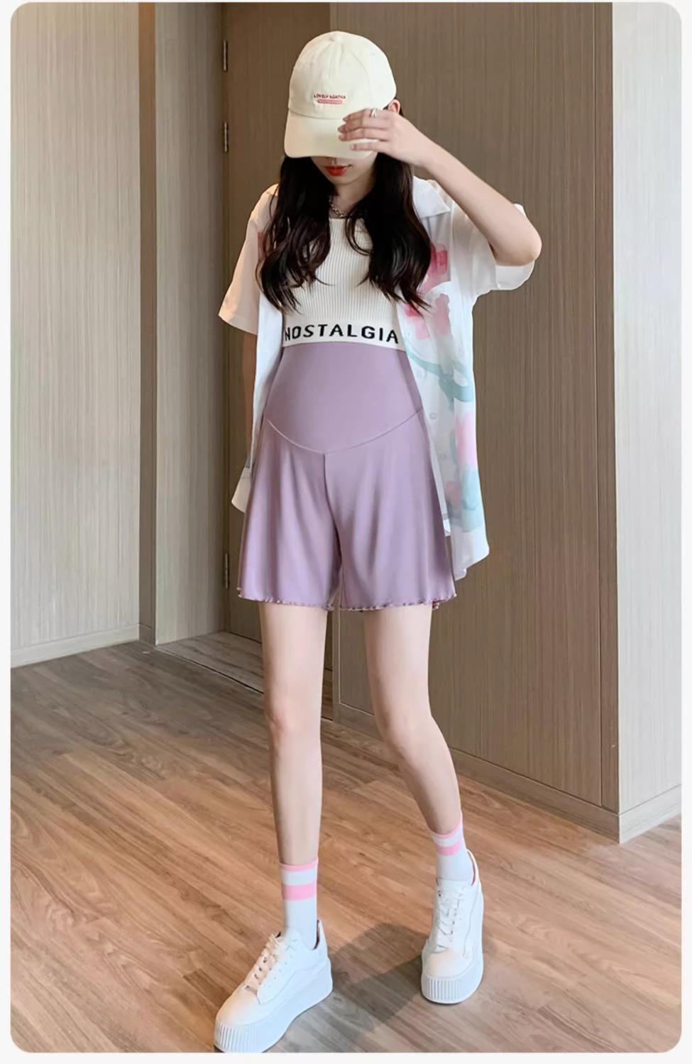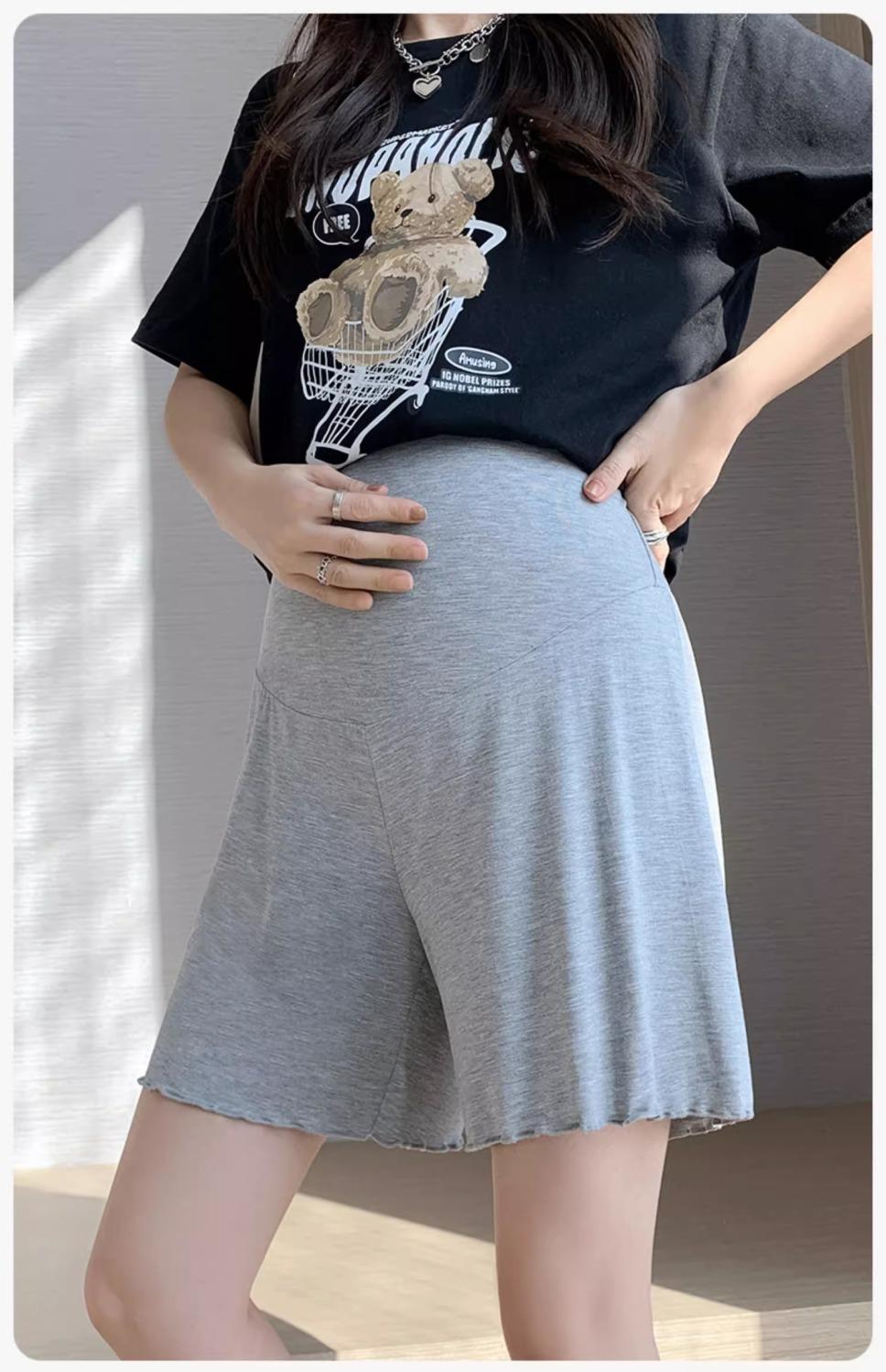 Shorts de Seda Gelo para Gestantes, Roupa Externa Fina de Verão, Calças de Segurança para Maternidade, Leggings Cinco Pontos, Pijama de Maternidade Ajustável