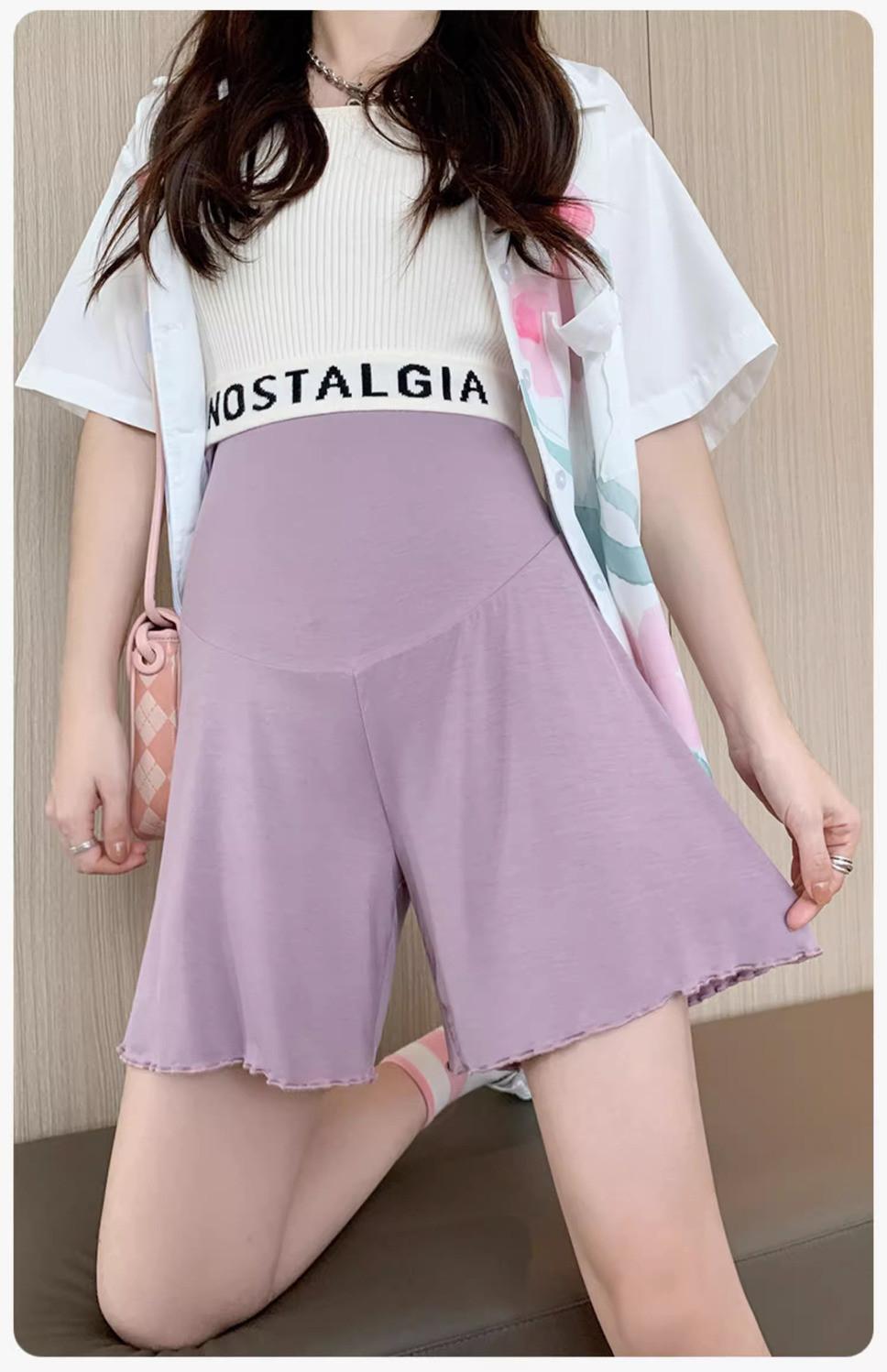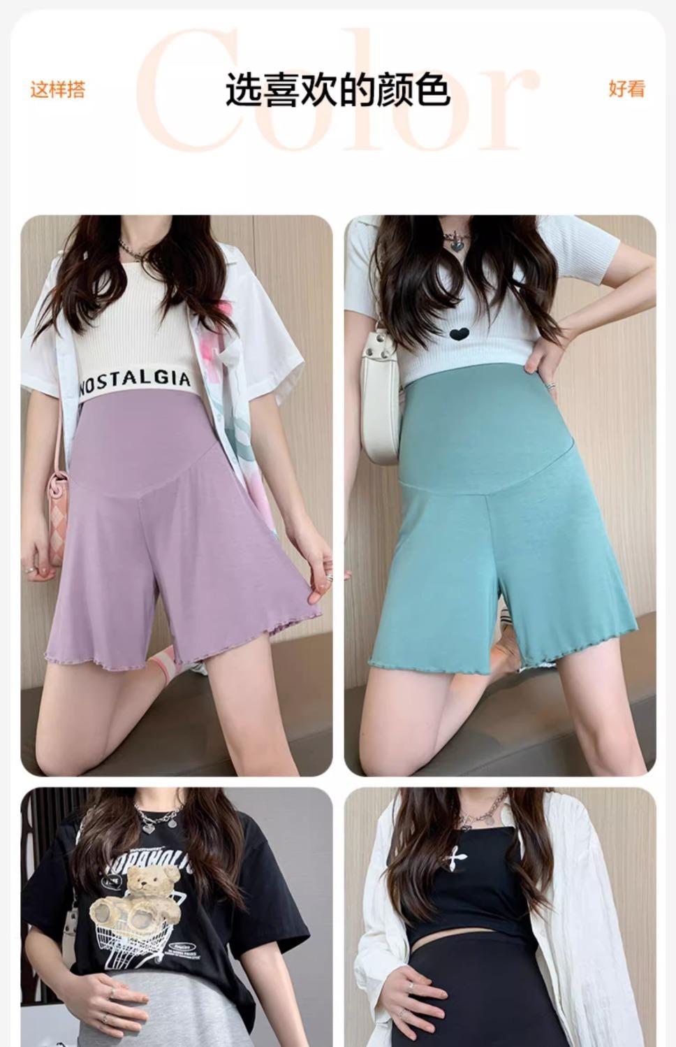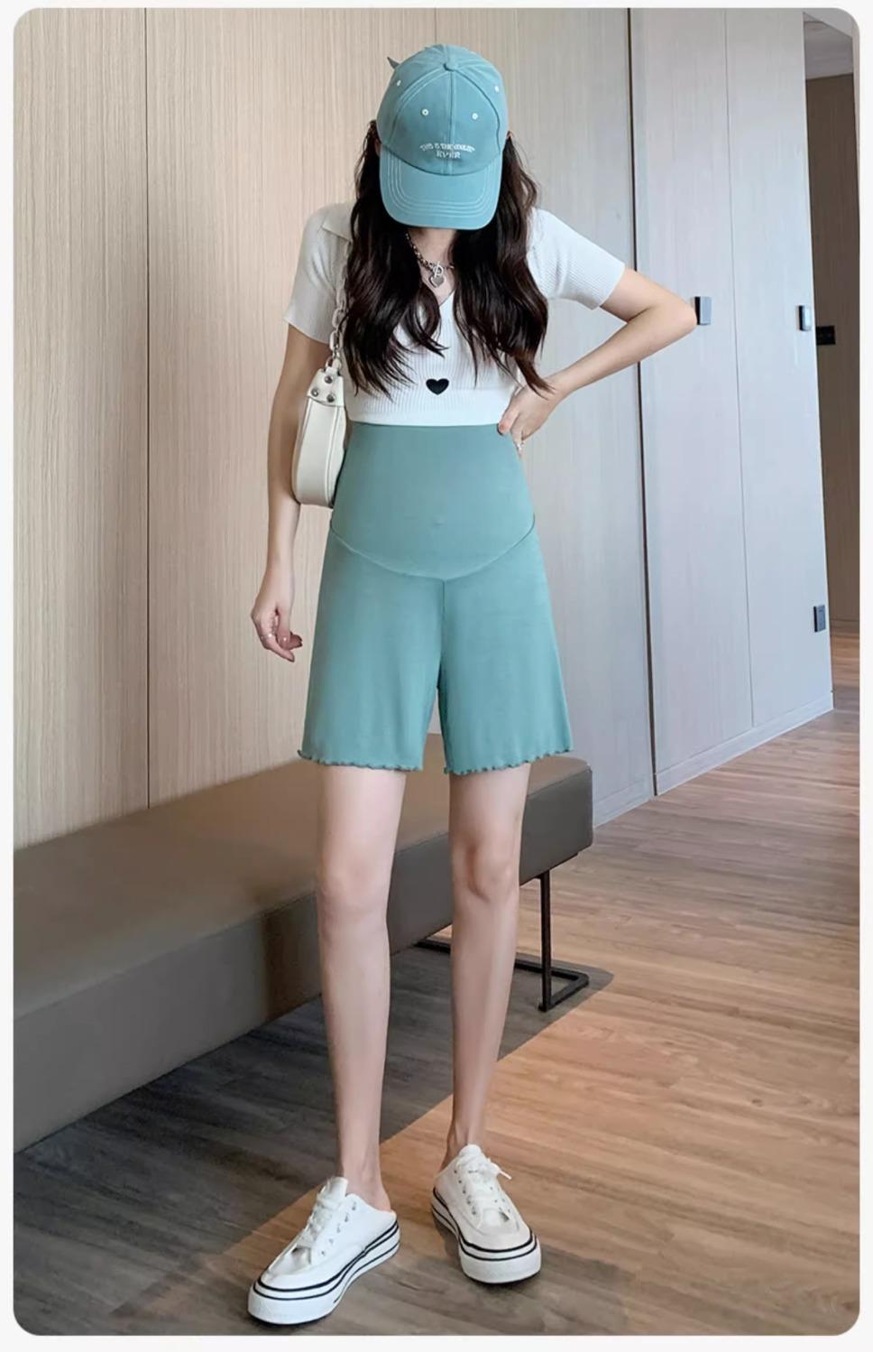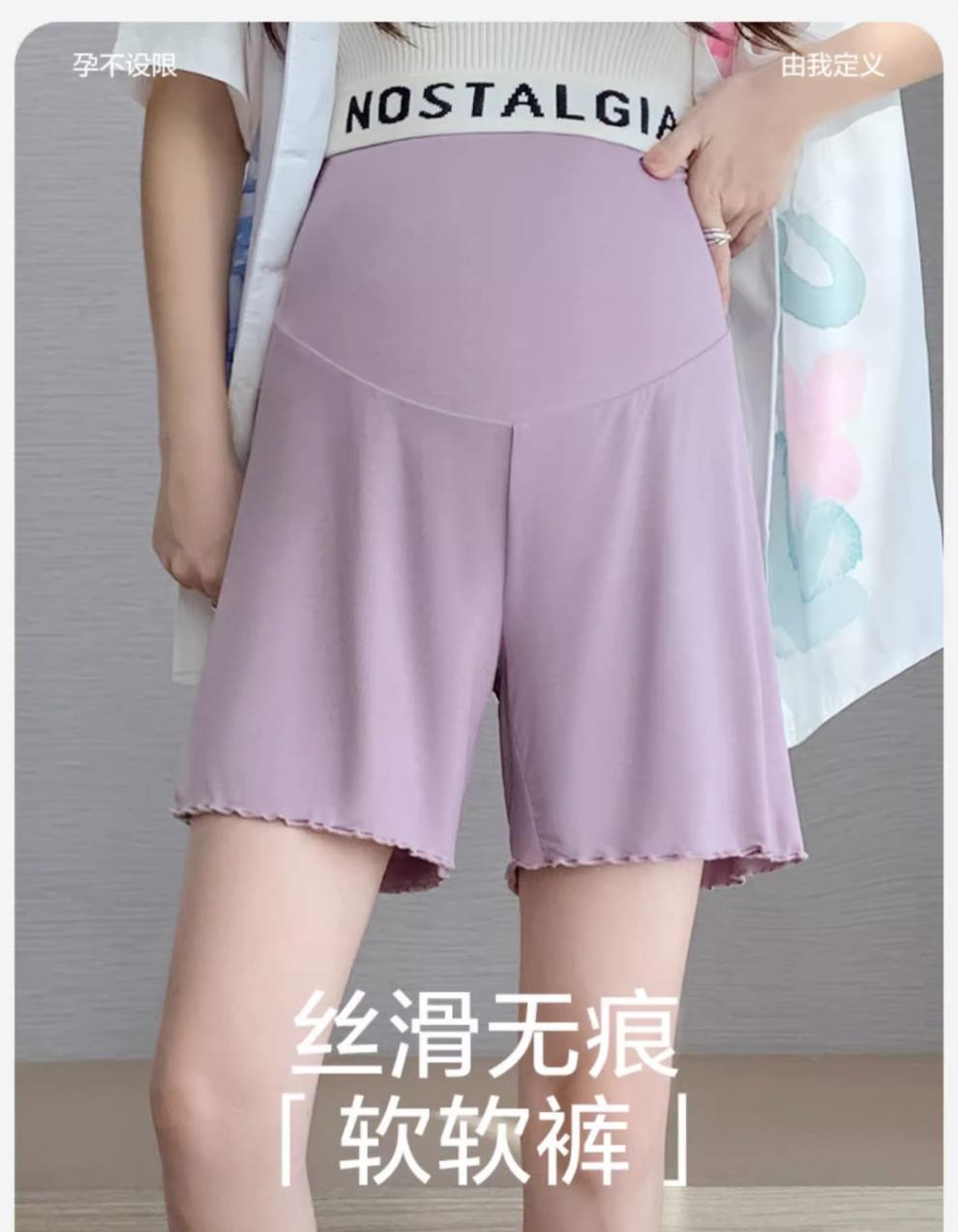 Shorts de Seda Gelo para Gestantes, Roupa Externa Fina de Verão, Calças de Segurança para Maternidade, Leggings Cinco Pontos, Pijama de Maternidade Ajustável