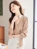 Camisa Feminina de Manga Comprida com Decote V Francês para Primavera e Outono, Elegante de Alta Qualidade, Camisa Solta para Trabalho, Top Profissional com Laço de Irmã Real