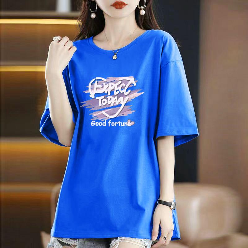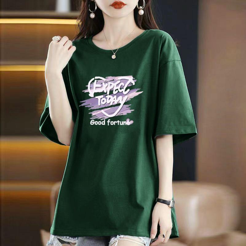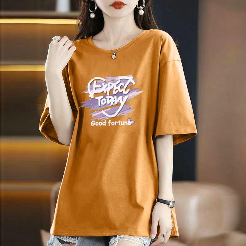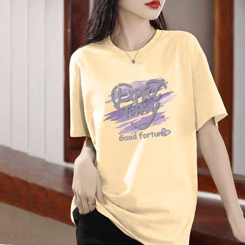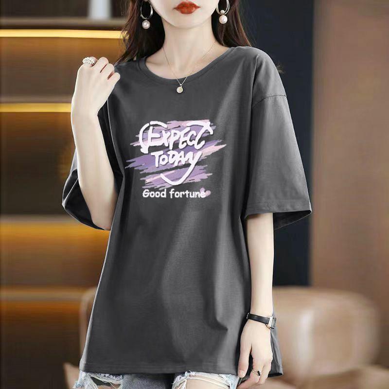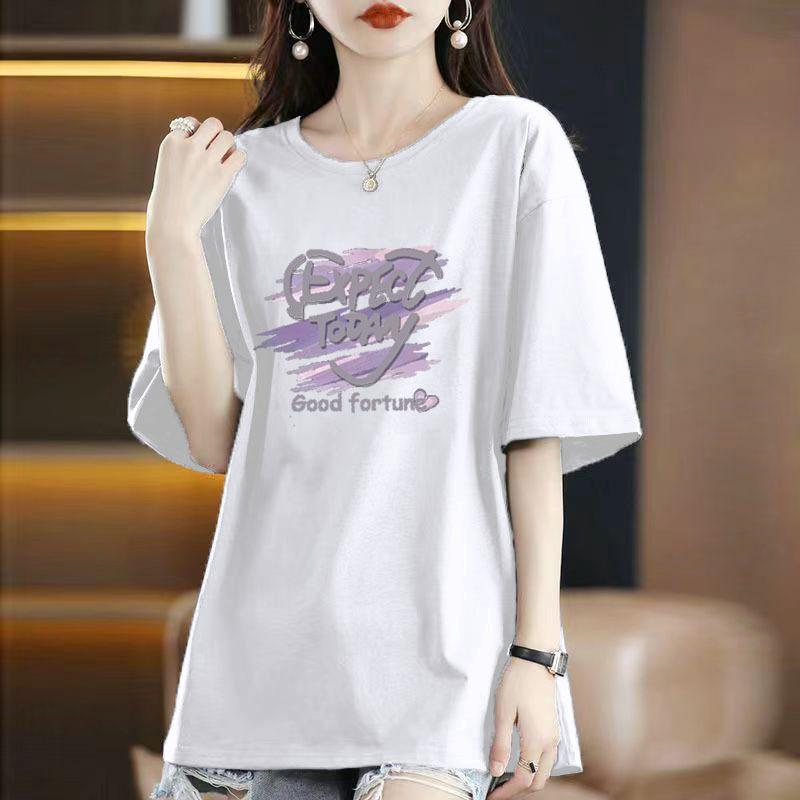 Camiseta de Manga Curta de Verão 2025 Novo Design Solta Casual Versátil Algodão Puro Estampada com Letras Top de Verão t
