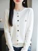 Primavera 2025 Novo Cardigan Tricotado Andy de Veludo Falso Duas Peças Gola Redonda Feminino Solto Slim Fino Casaco Suéter