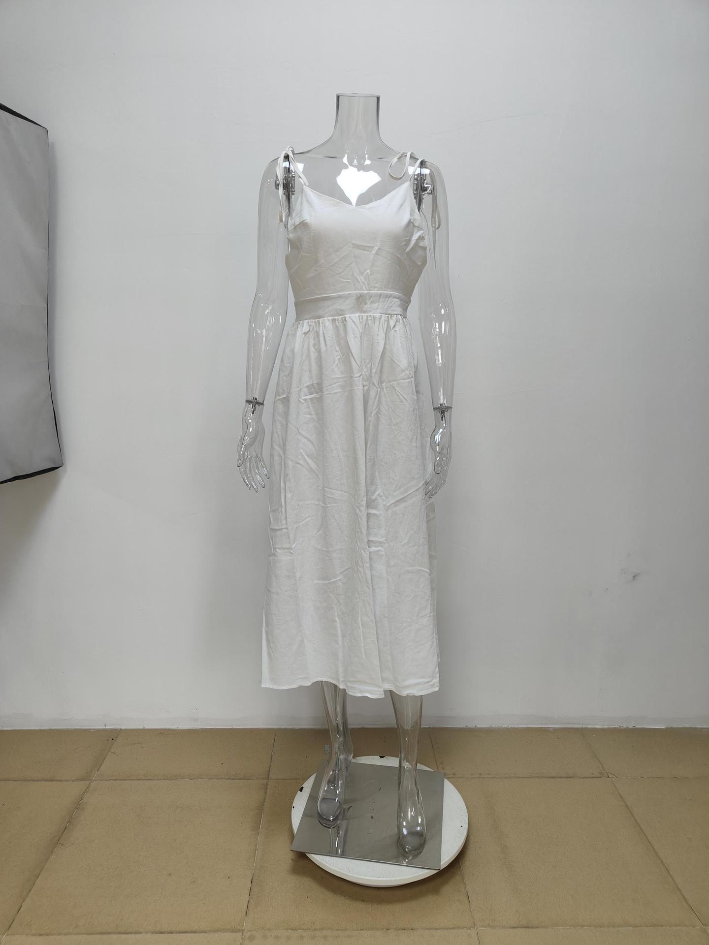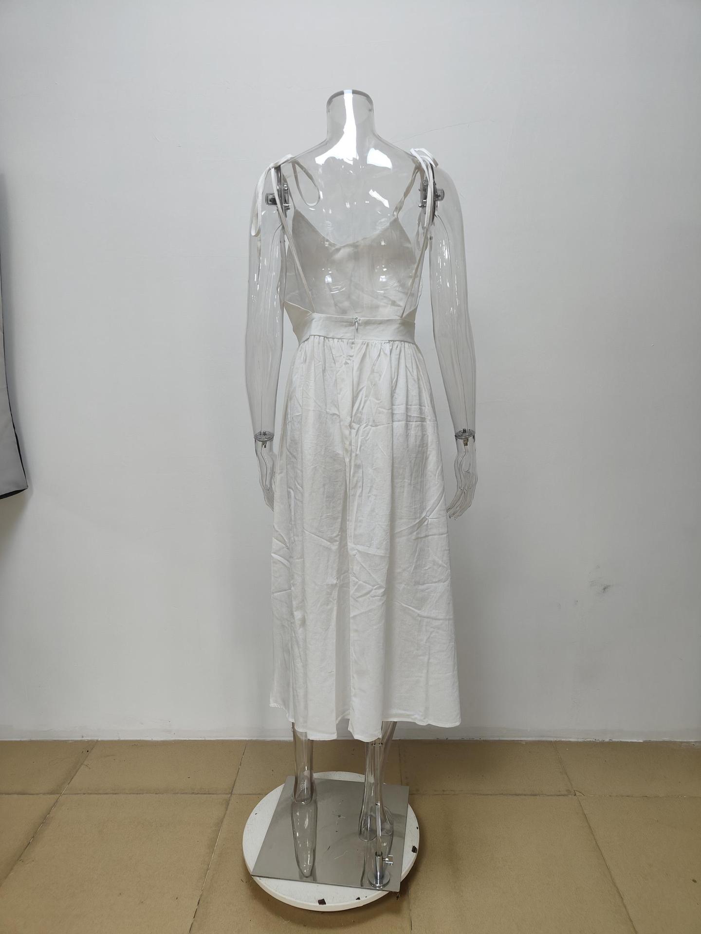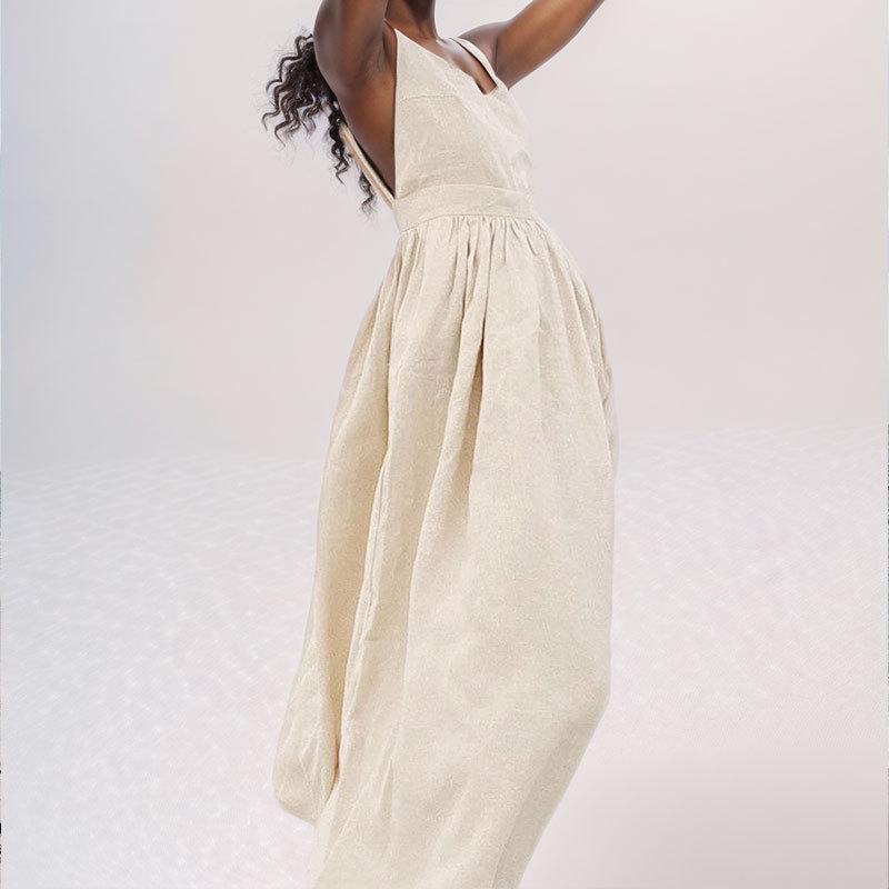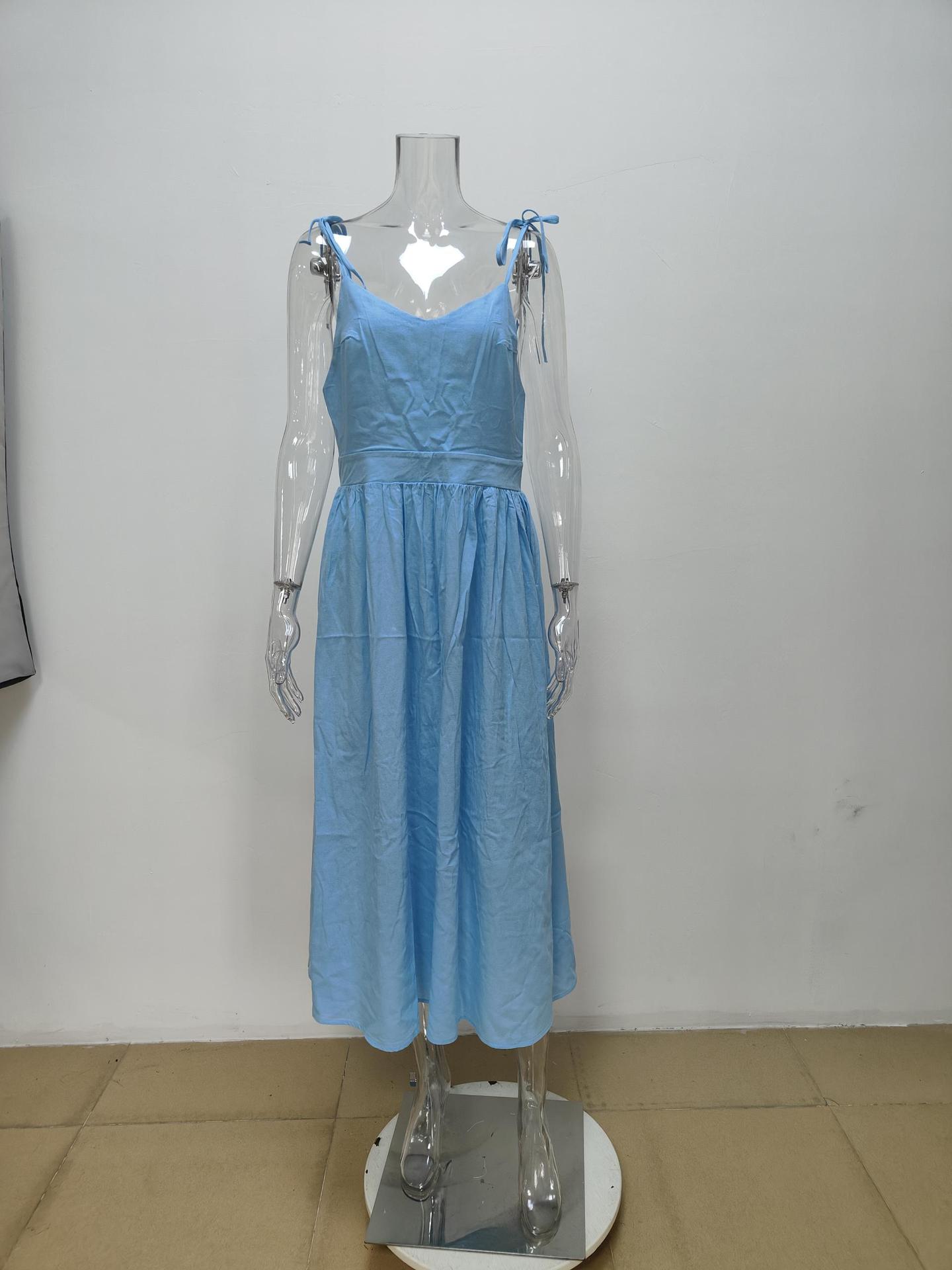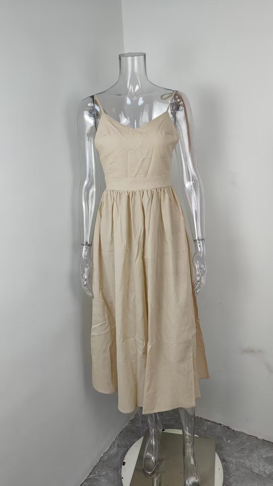 Primavera Amazon Europeu e Americano Transfronteiriço Saia Feminina Sem Costas Sexy Decote V Moda Cor Pura Sem Mangas Vestido Suspensório