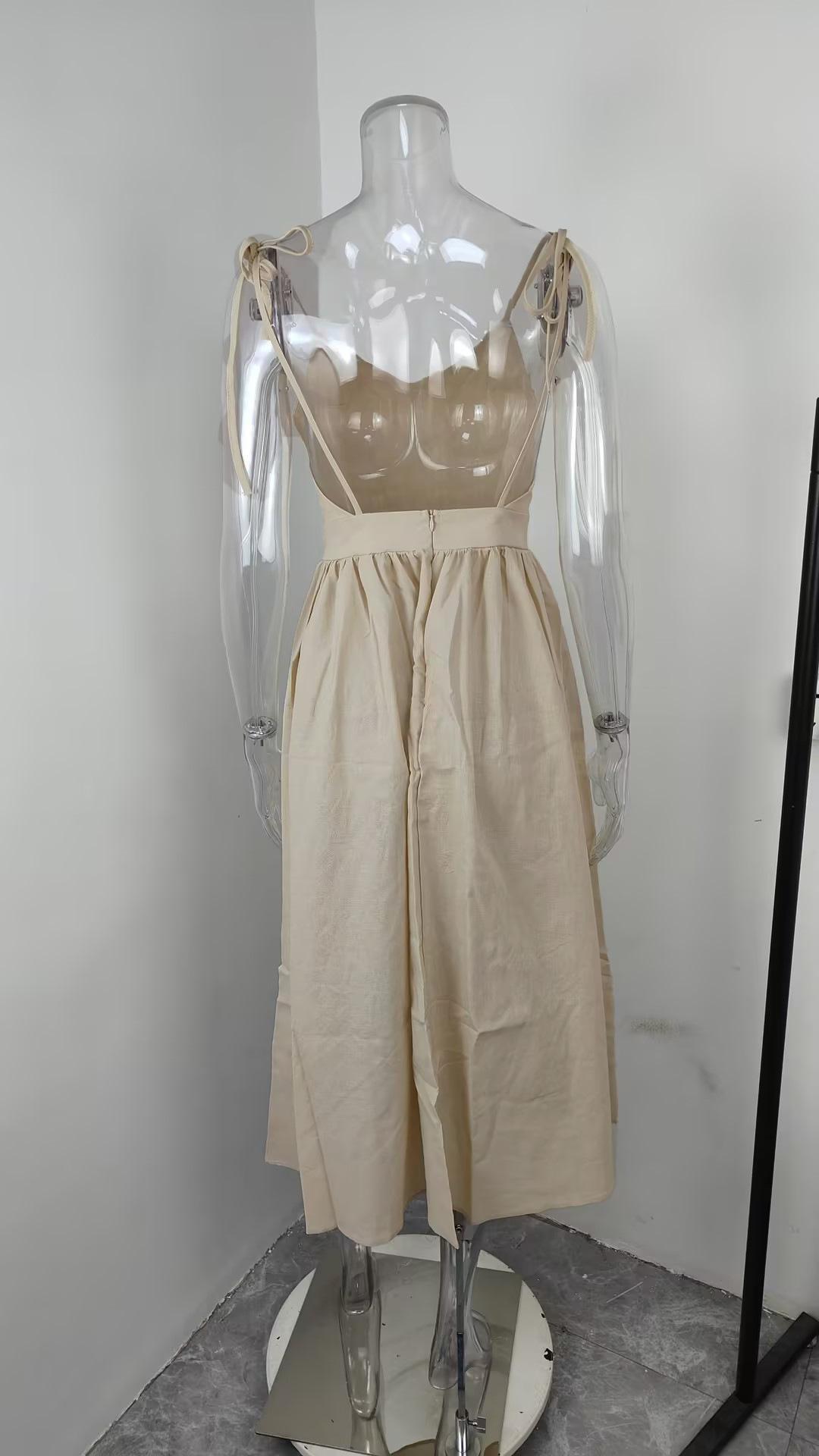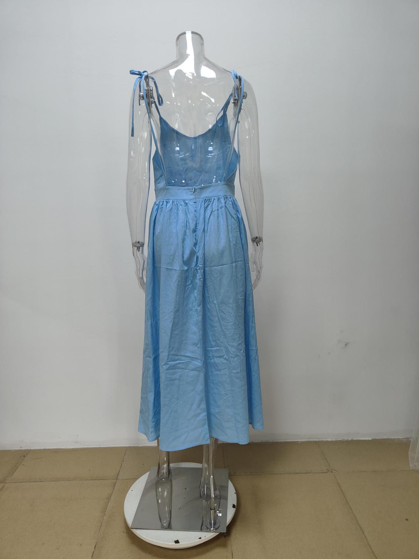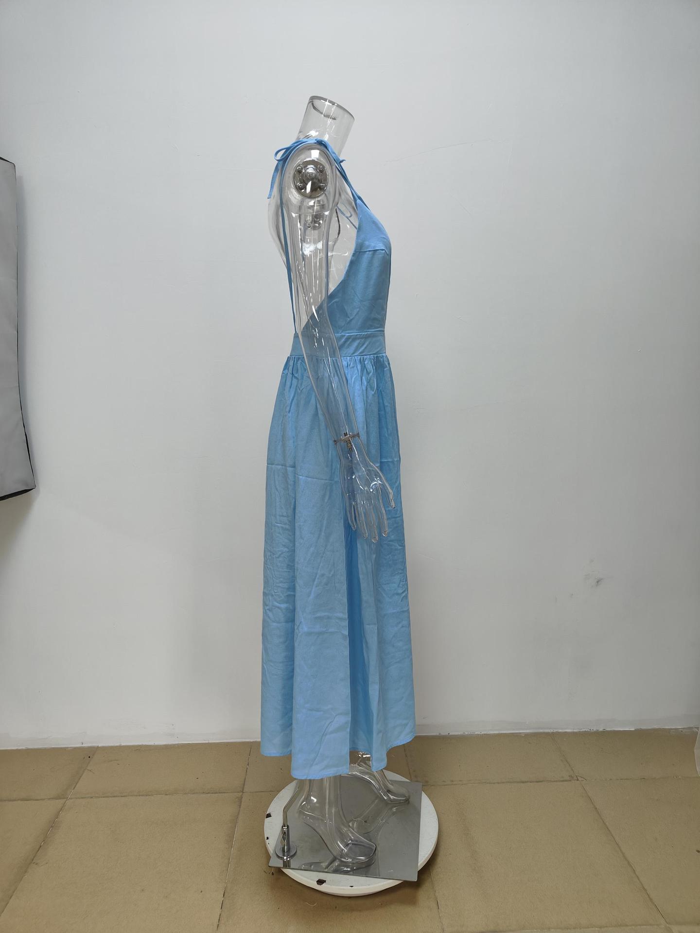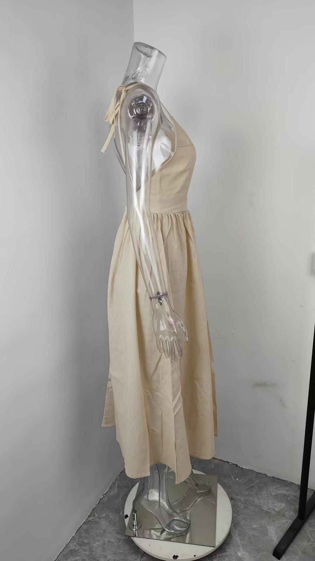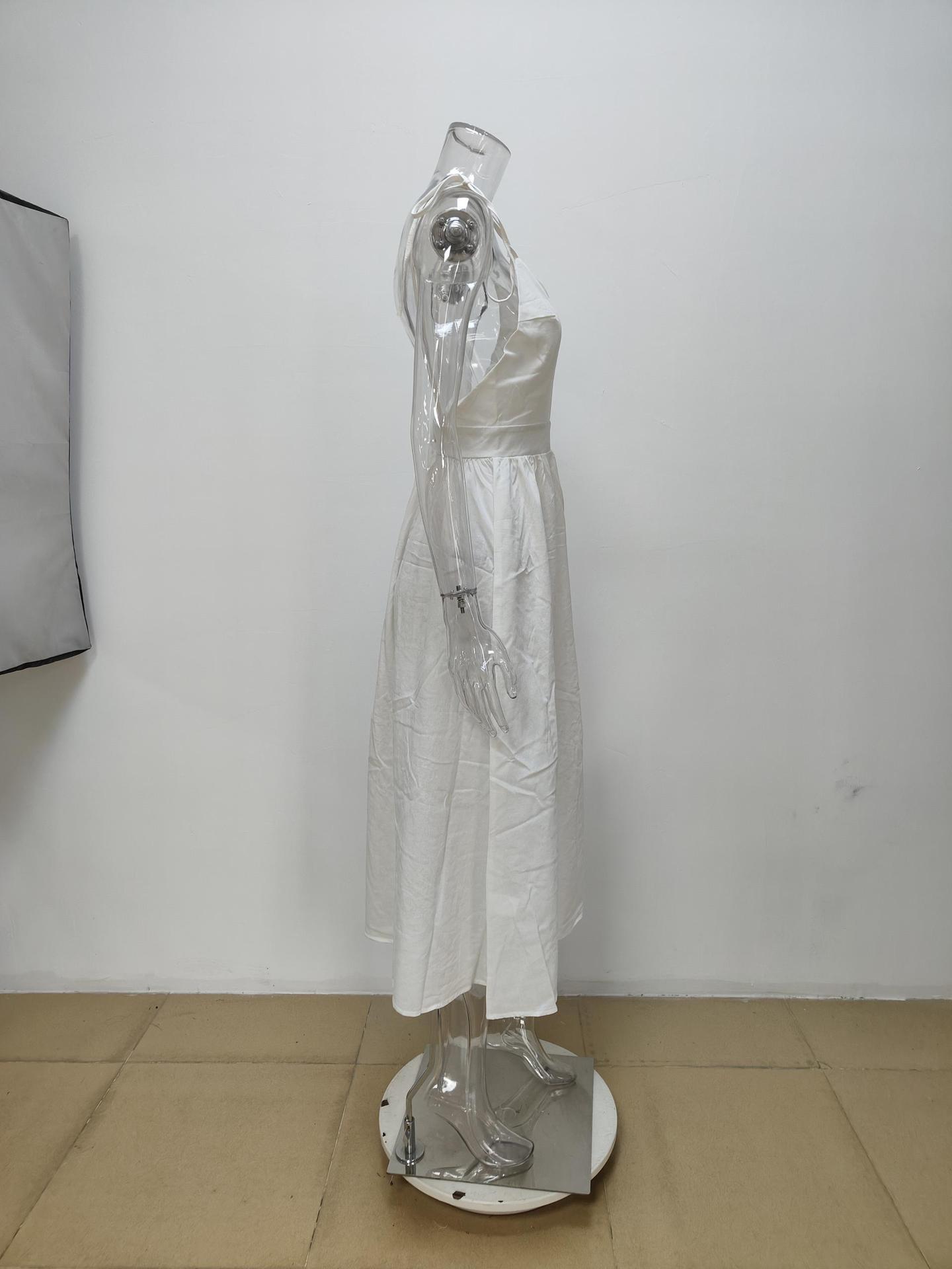 Primavera Amazon Europeu e Americano Transfronteiriço Saia Feminina Sem Costas Sexy Decote V Moda Cor Pura Sem Mangas Vestido Suspensório