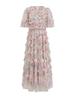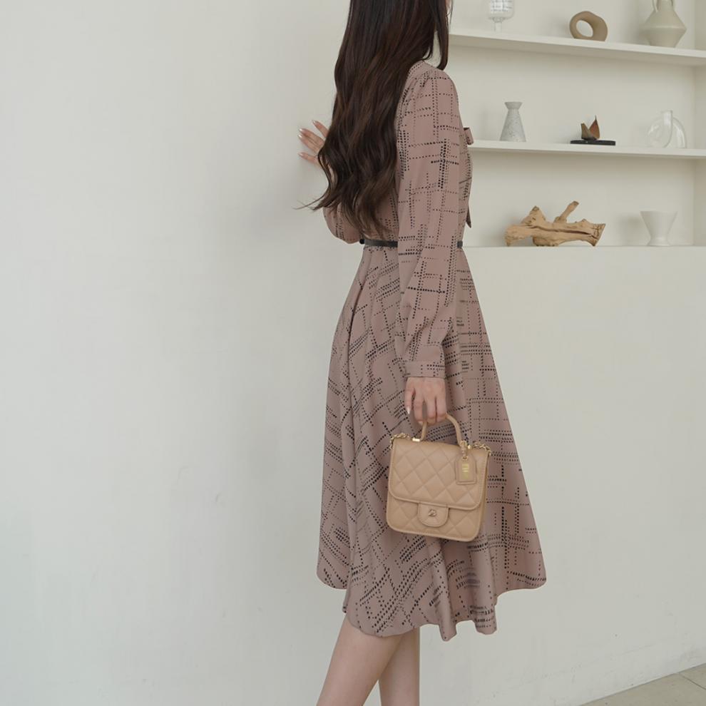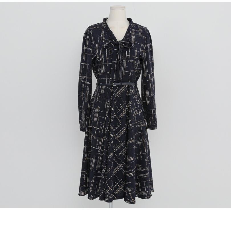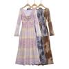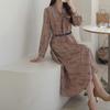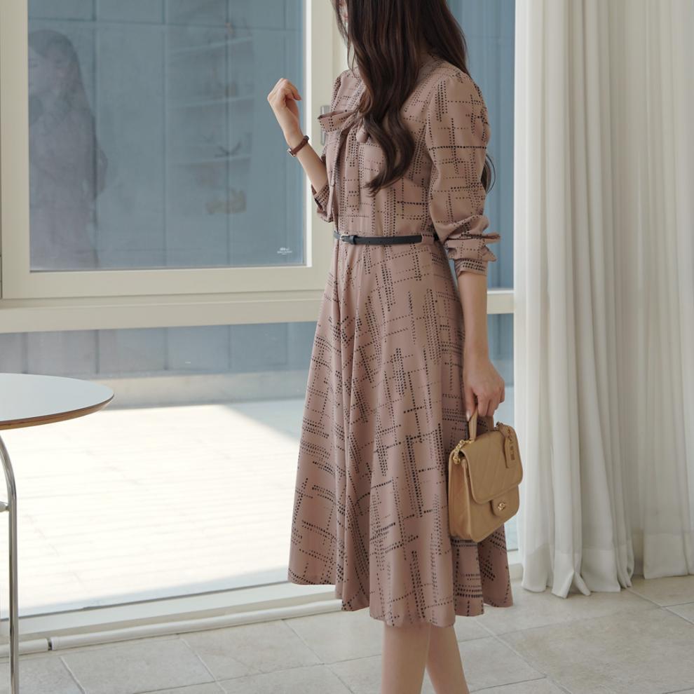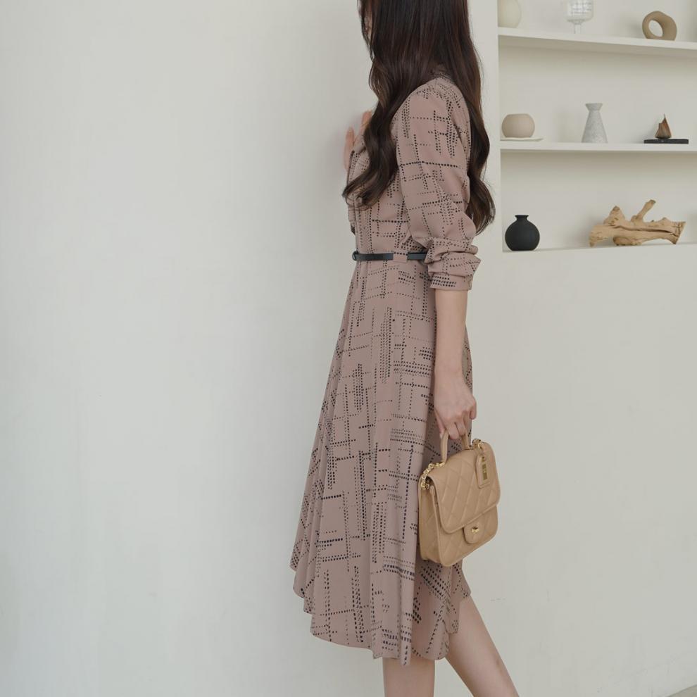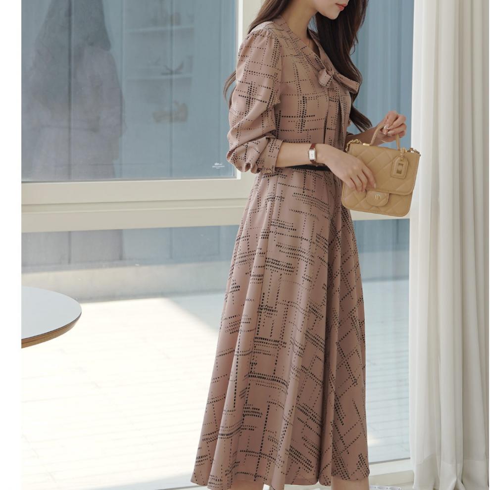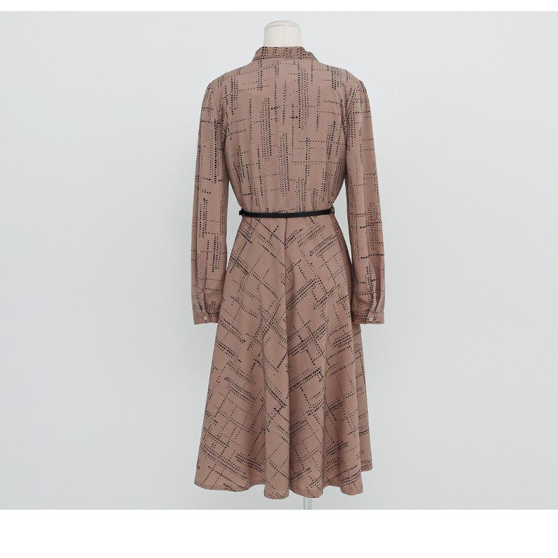 2024 Novo Vestido Feminino Plus Size de Manga Comprida com Colarinho de Fita em V, Estampa Abstrata, Slim, Saia Longa com Cinto