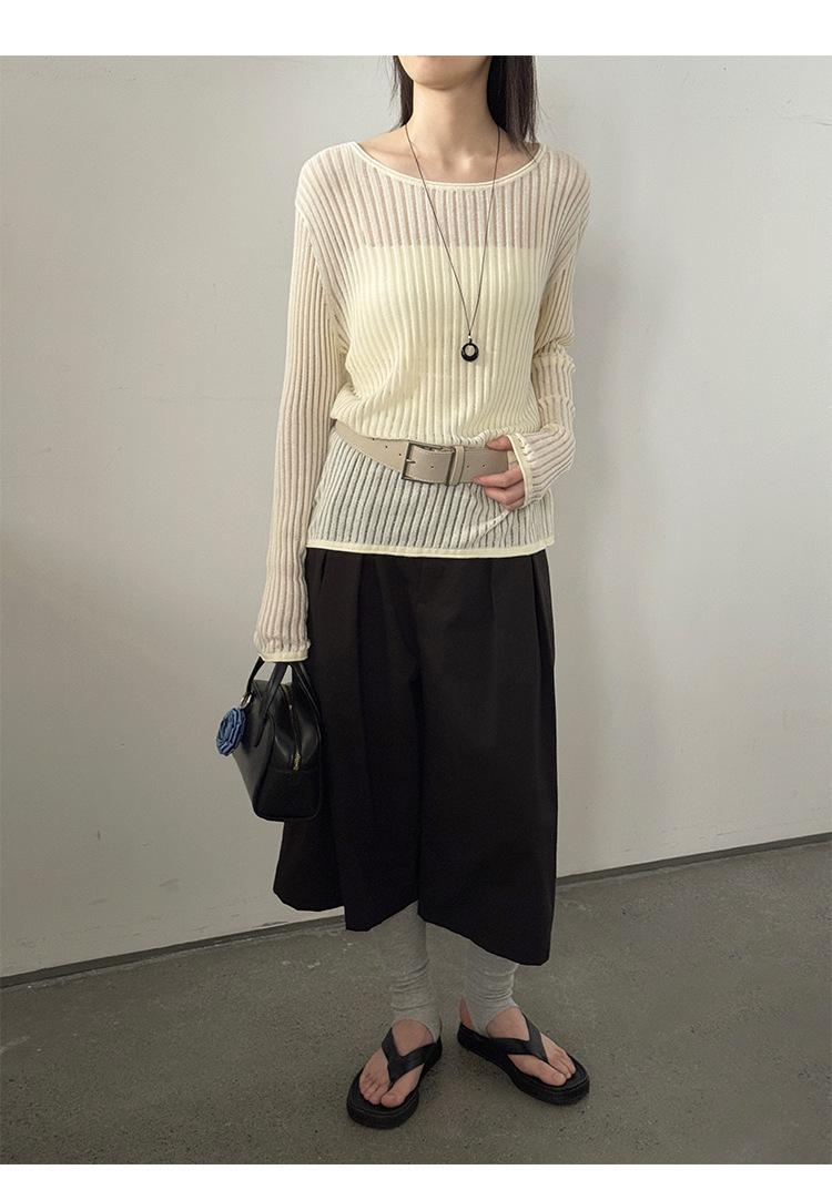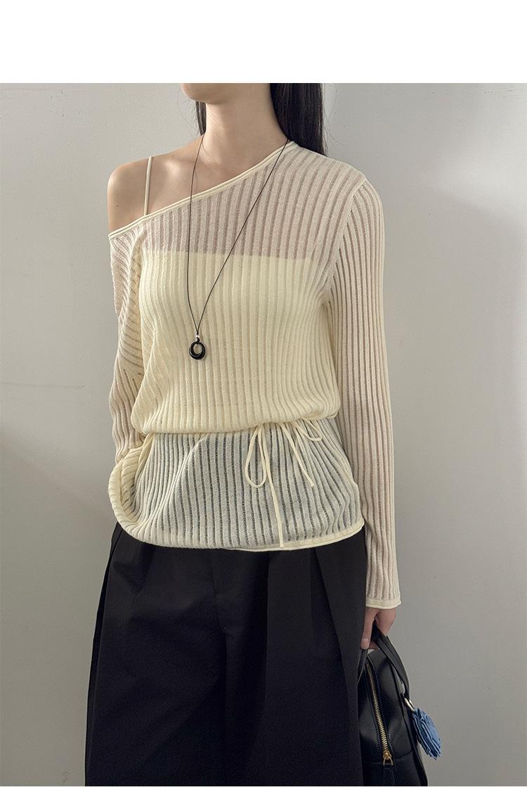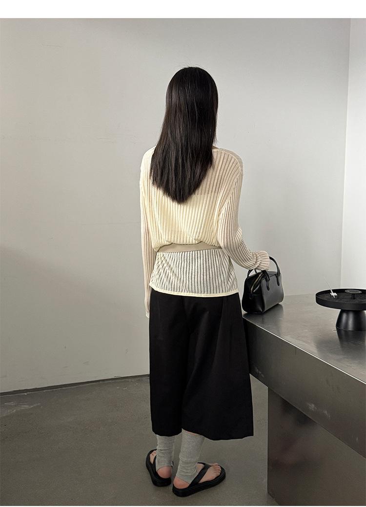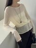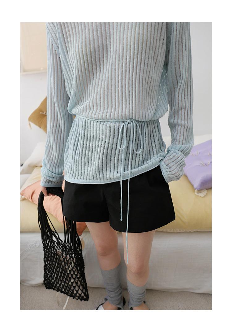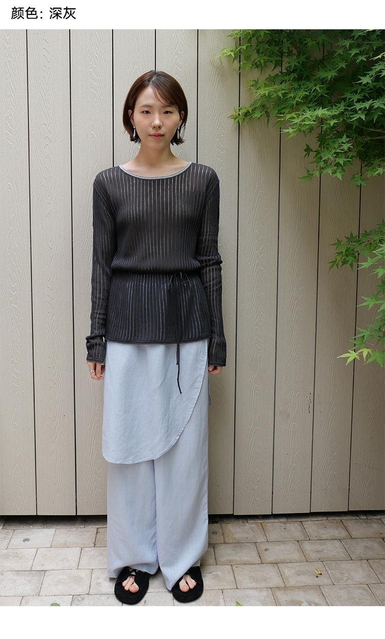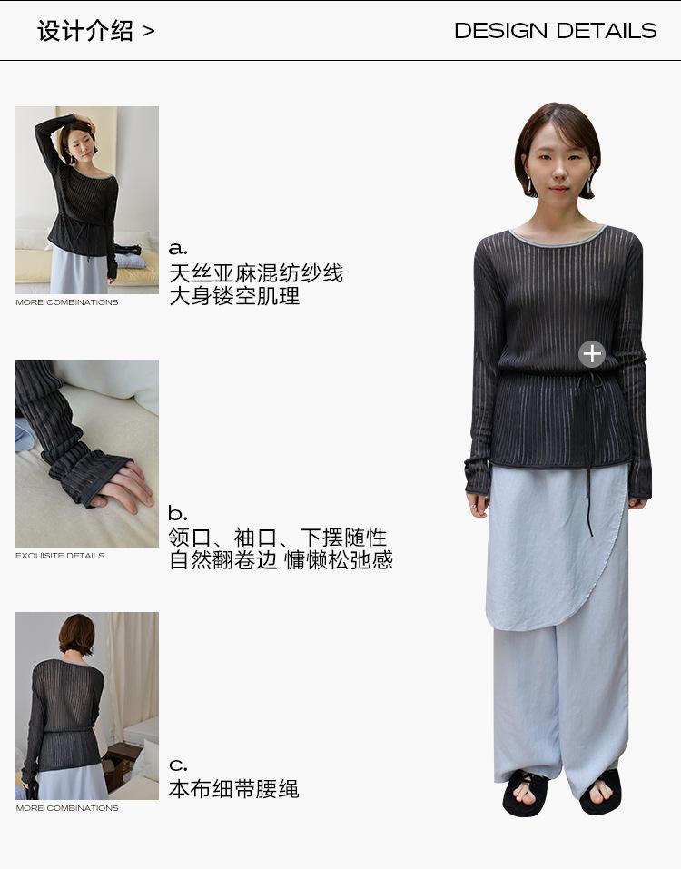 Também sensação clara de nudez relaxamento preguiçoso malharia oca verão novo leve respirável cintura top 01056