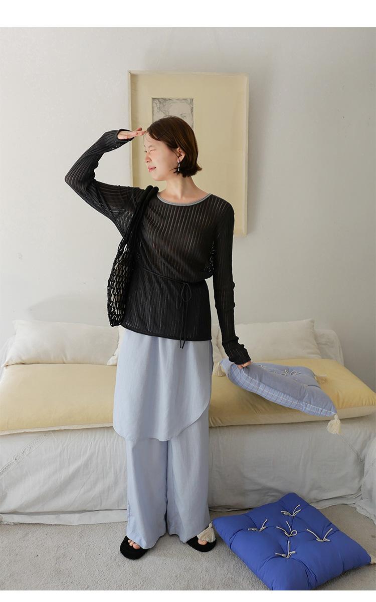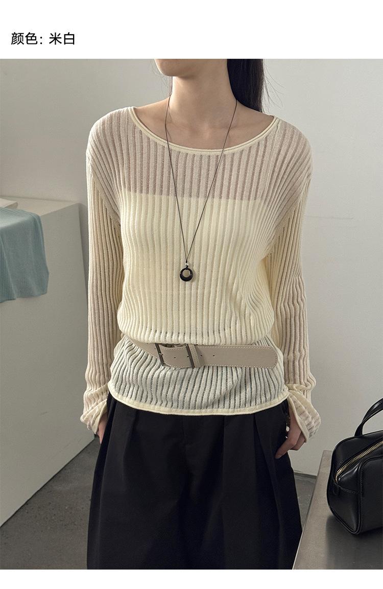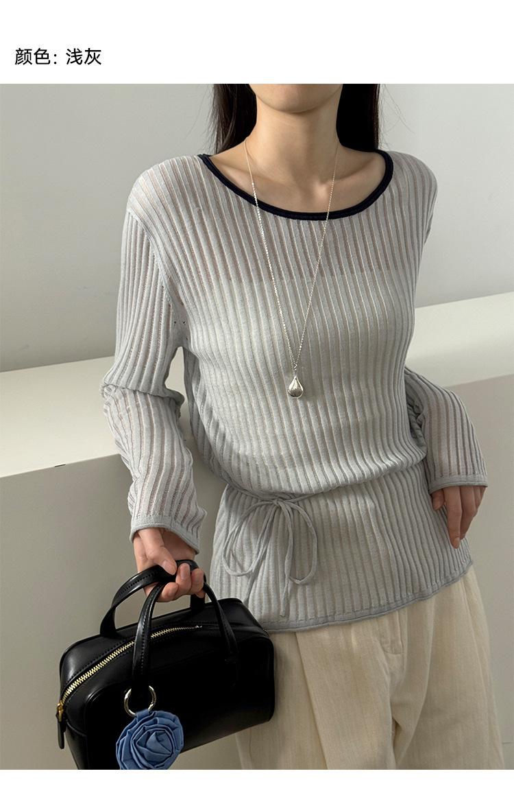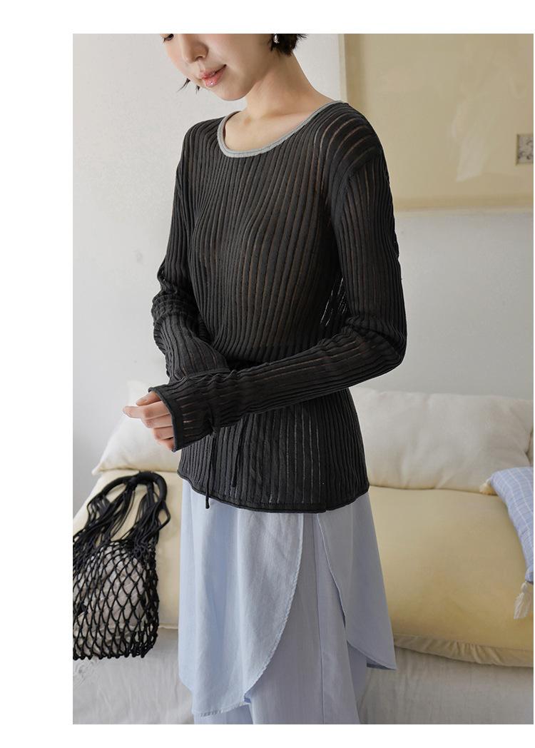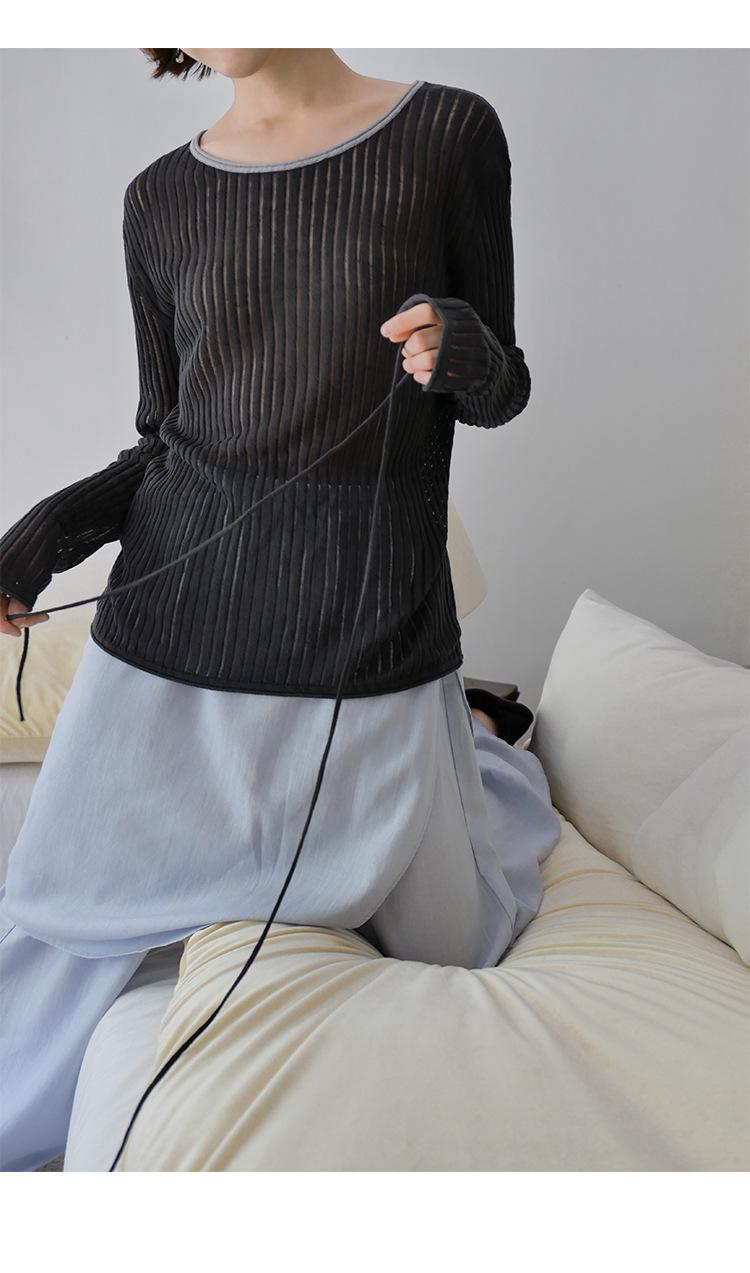 Também sensação clara de nudez relaxamento preguiçoso malharia oca verão novo leve respirável cintura top 01056