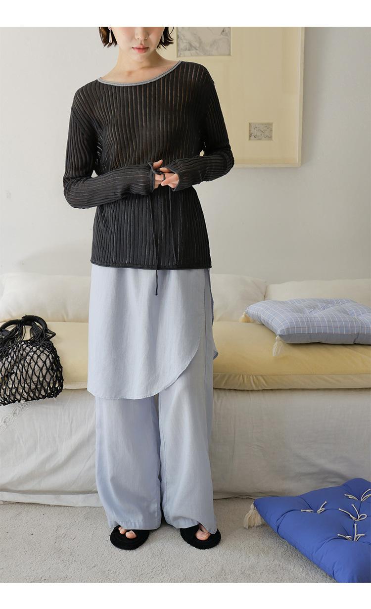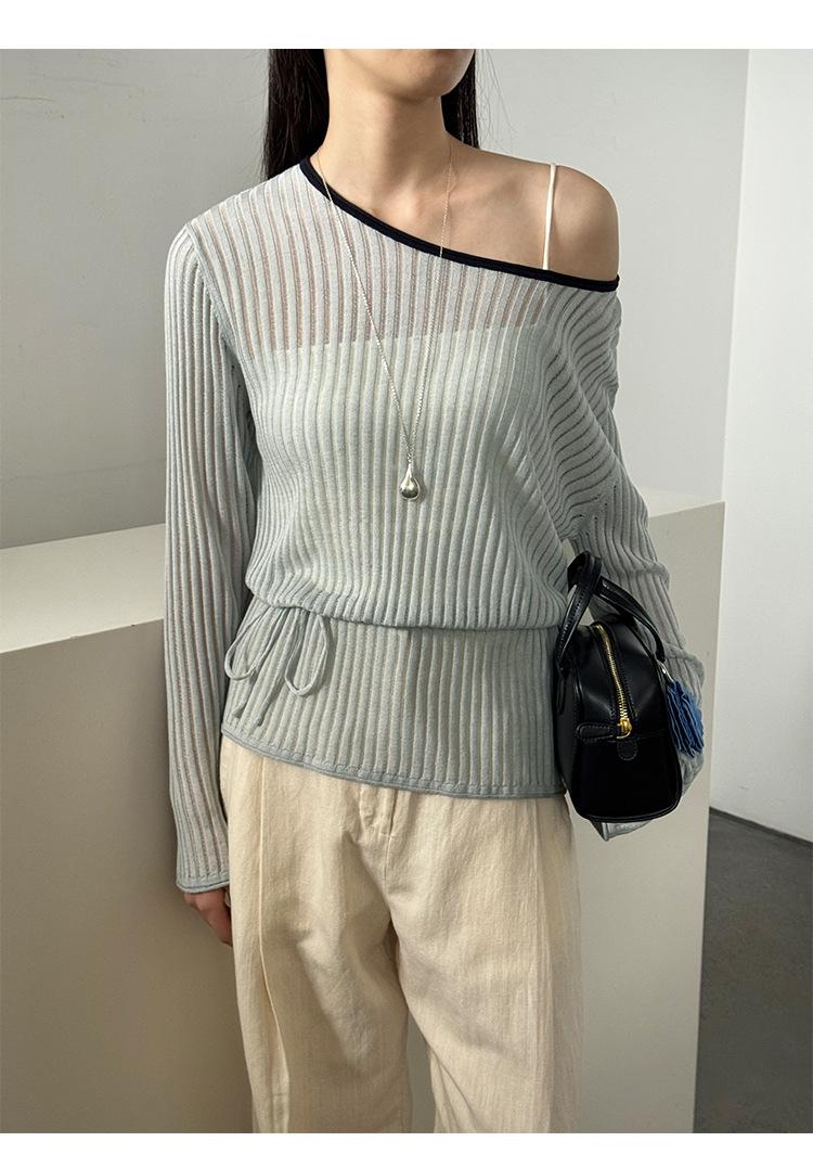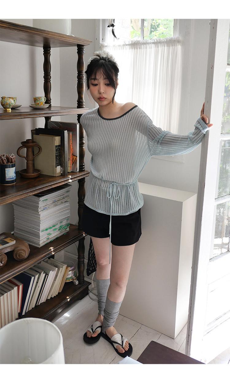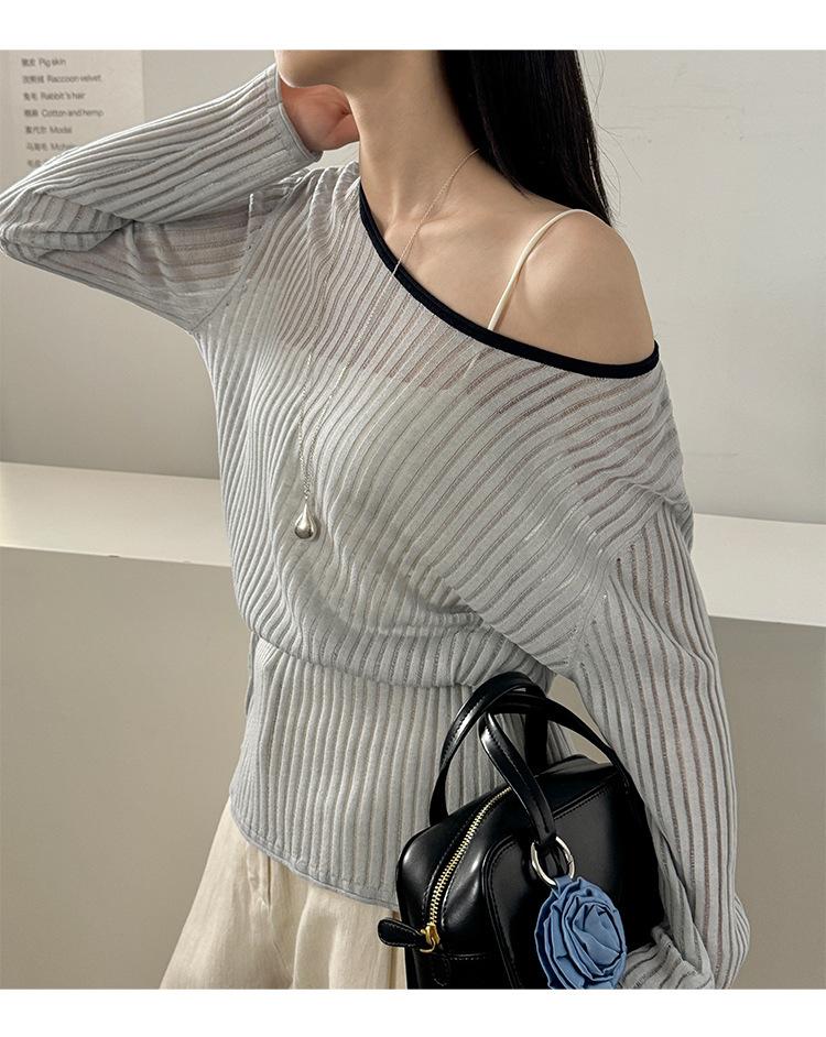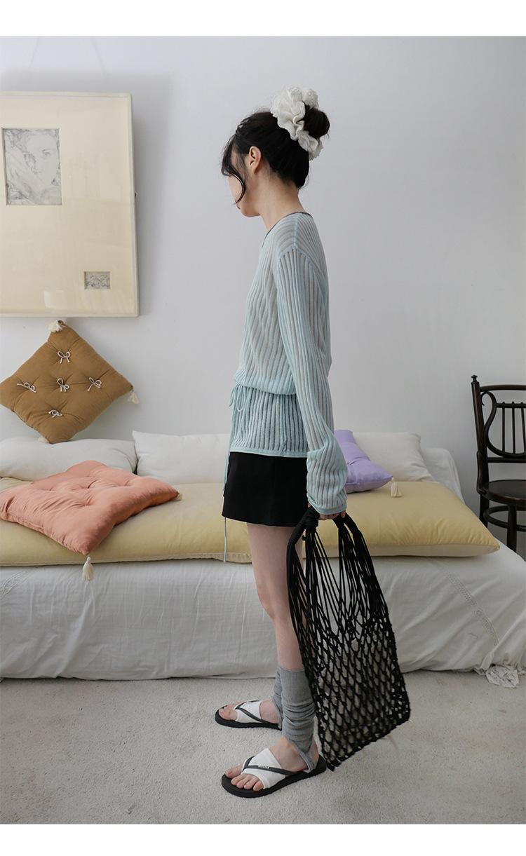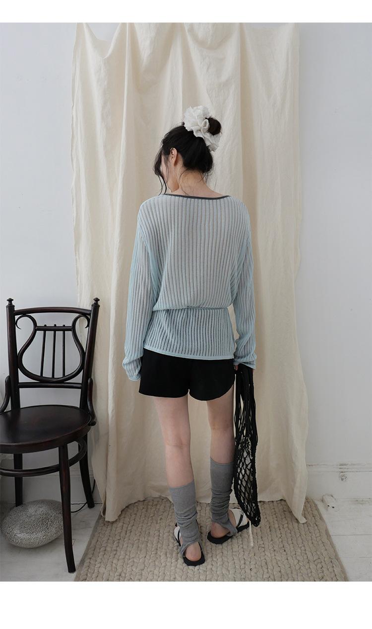Também sensação clara de nudez relaxamento preguiçoso malharia oca verão novo leve respirável cintura top 01056
