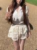 Spot Doce Doce Verão Férias Sul da França Série Algodão Camisa Bordada Saia