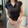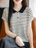 Camiseta Brilhante Cintilante Seda Gelo Seda Manga Curta Suéter Feminino Novo Verão Fino Solto Emagrecimento Manga Média Gola Polo