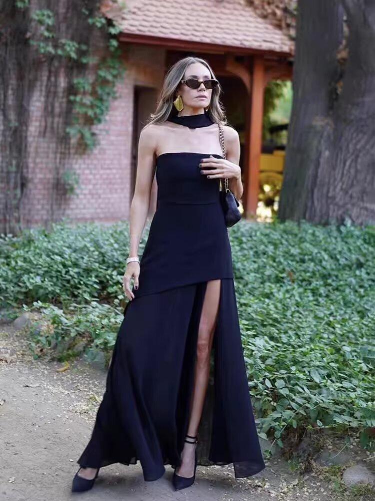 Roupa Europeia e Americana Transfronteiriça Aliexpress Popular Tubinho Vestido Sexy Cor Sólida