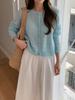 Estilo Coreano Primavera 2025 Estilo Francês Gola Redonda Suave Jacquard Vazado Macio Encerado Gola Redonda Cardigan Tricotado Casaco Suéter para Mulheres