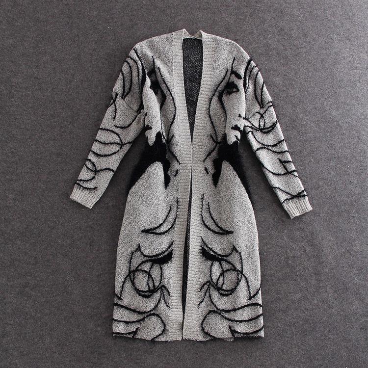 Cardigan Longo Tricotado Estilo Preguiçoso Novo Estilo Europeu e Americano para Mulher 2025 Início de Outono Elegante Versátil Solto Jaqueta Suéter Tendência