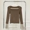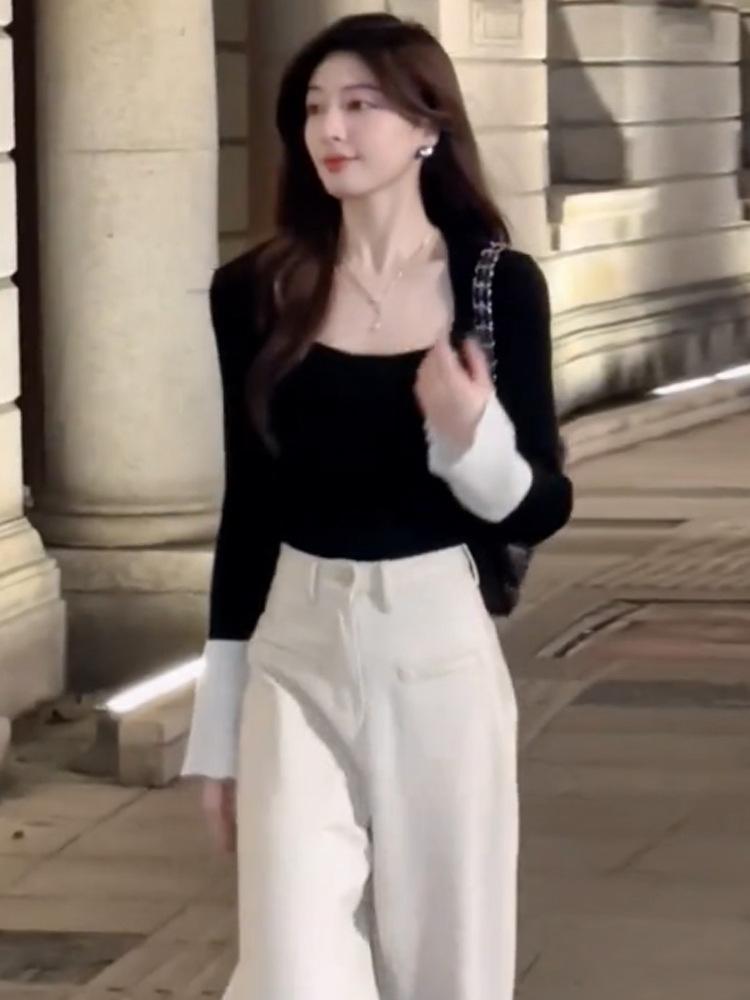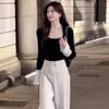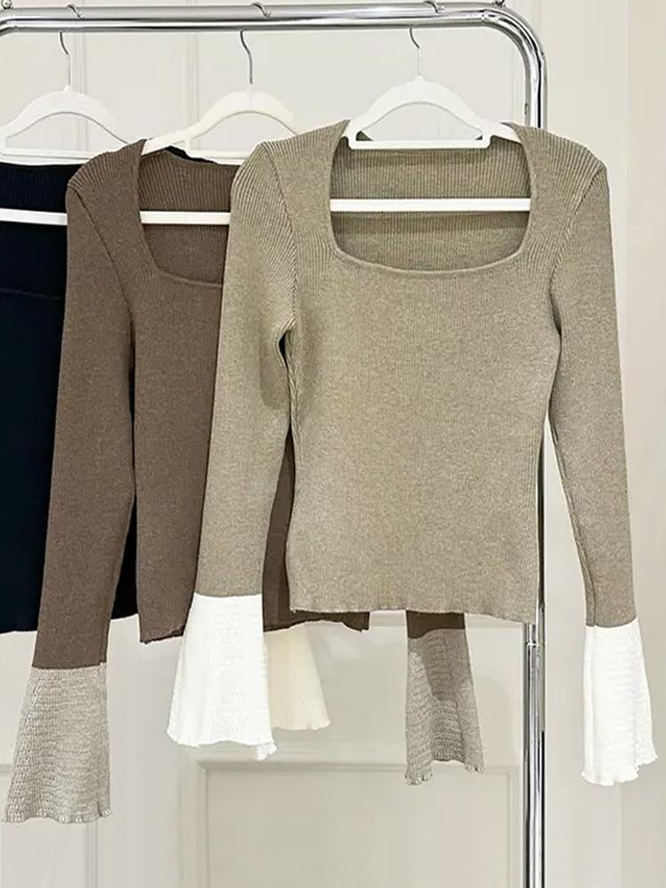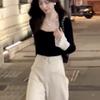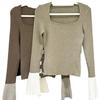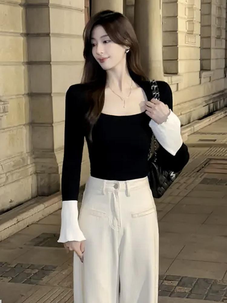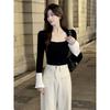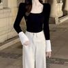 Camiseta de Manga Comprida Slim-fit Emagrecimento com Gola Quadrada de Cor Contrastante Spice Girls Nicho Desejo Puro Sexy Elegante Único Top ins