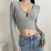 Camiseta de Manga Comprida com Proteção Solar para Mulheres 2025 Verão Novo Design Nicho Fina Sexy Top Cruzado Decotado Tendência