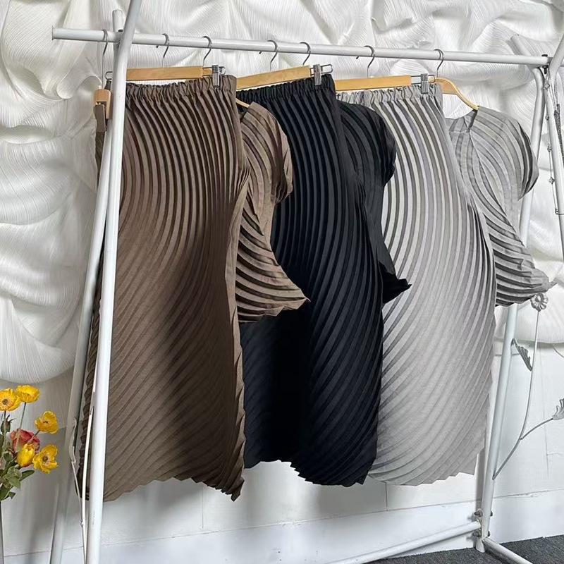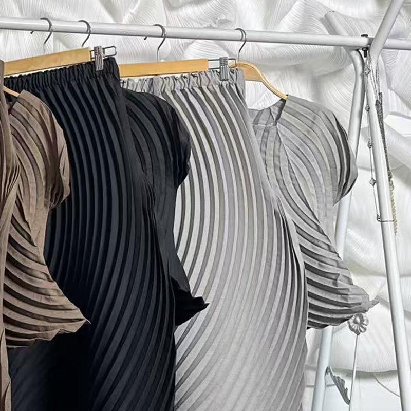 Terno de Moda Irregular Roupas Femininas de Alta Qualidade Conjunto de Duas Peças Feminino Elegante Top Plissado Saia Conjunto de Duas Peças