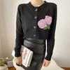 Cardigã Tricotado de Manga Longa M Home de Alta Qualidade com Jacquard de Letras em Cores Contrastantes para Mulher, Estilo Francês, Estilo Universitário, Casaco Top