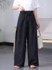 Primavera, Verão e Outono Três Estações Artístico Retrô Casual Solto Elástico Cinto Cordão Listrado Calças Calças de Perna Larga