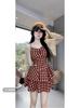 [Menina Verde] tamanho grande menina gordinha Estilo Menina Moda Xadrez Retrô Saia Bolo Conjunto Cardigã Duas Peças