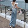 Costura exposta em todo o corpo, estilo calças largas de perna larga para favorecer as linhas das pernas,
