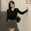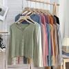 Cardigã Doce Outonal Fresco Doce Feminino Fino Gola Redonda Mistura de Caxemira Manga Longa Cor Sólida Jaqueta Base