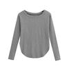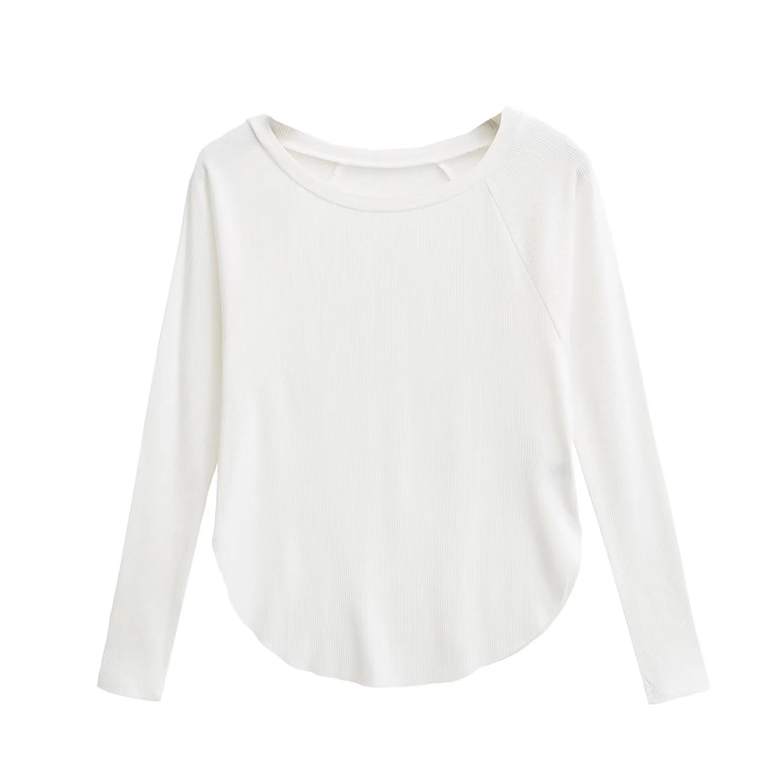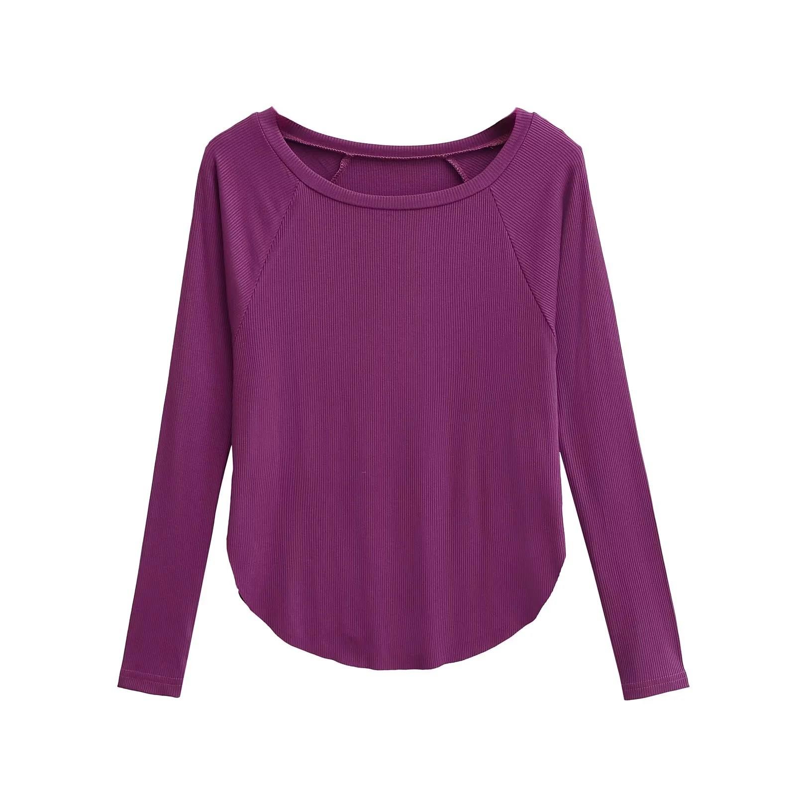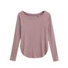 Roupas de Yoga Fitness Nude para Mulheres, Tops de Yoga Soltos e Sexy com Bainha Curva, Camisetas Casuais Drapeadas de Manga Longa para Esportes