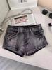 Shorts Jeans Americanos Retrô Lavados Preto e Cinza para Mulheres no Verão, Calças Curtas Sexy de Cintura Baixa em A que Abraçam os Quadris para Mulheres
