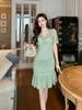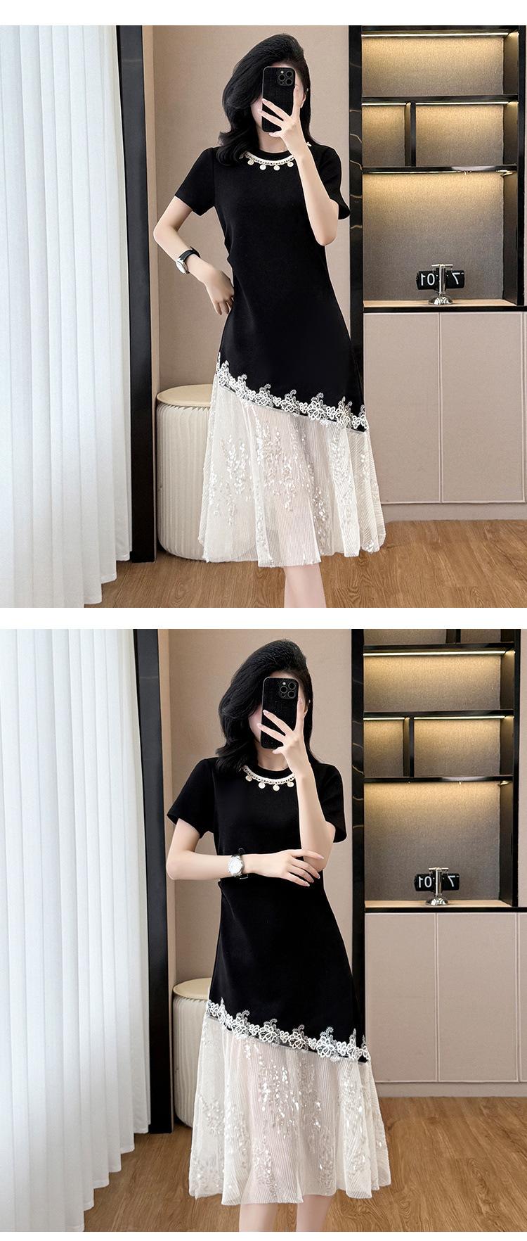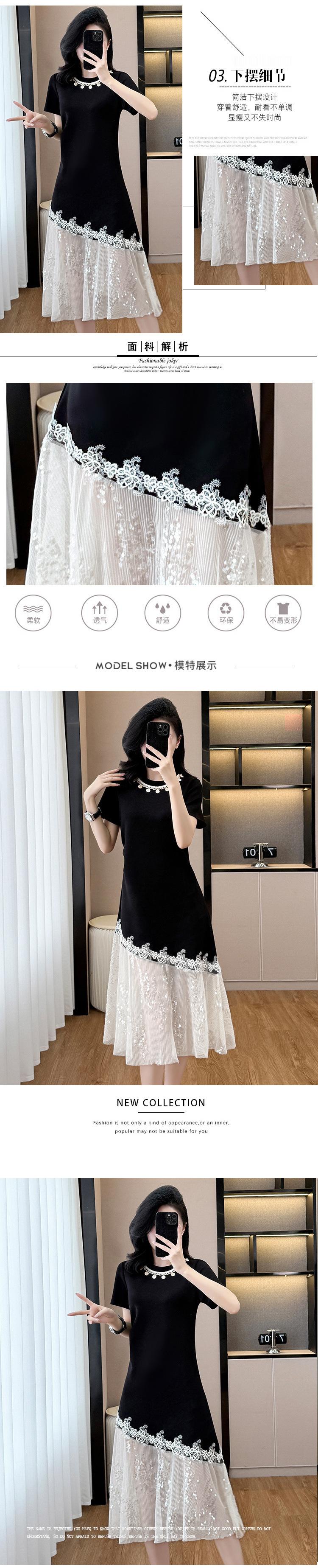 Vestido Slim de Alta Qualidade para Mulheres no Verão, Novo Design com Aplicação de Malha, Moderno e Elegante, Saia Rabo de Peixe Irregular
