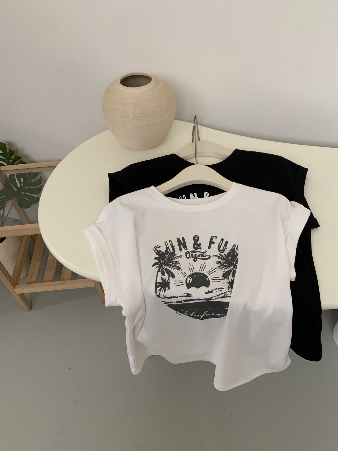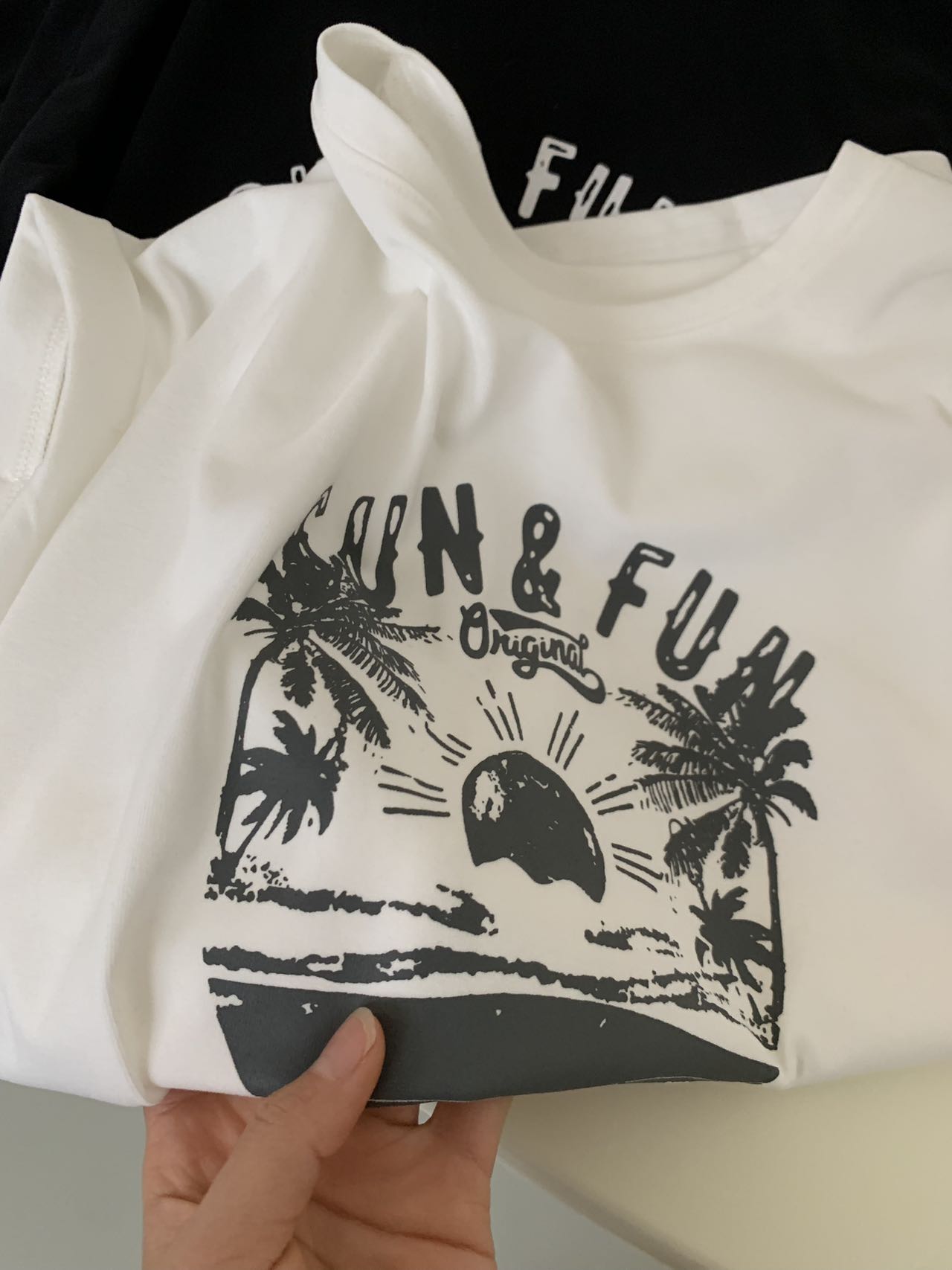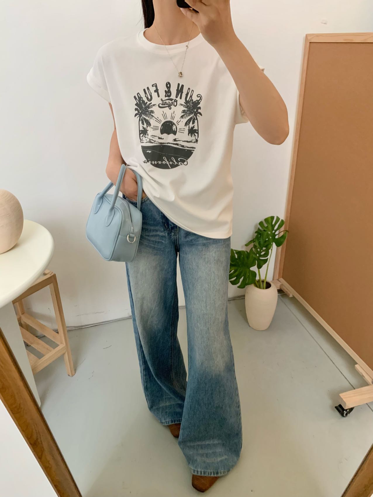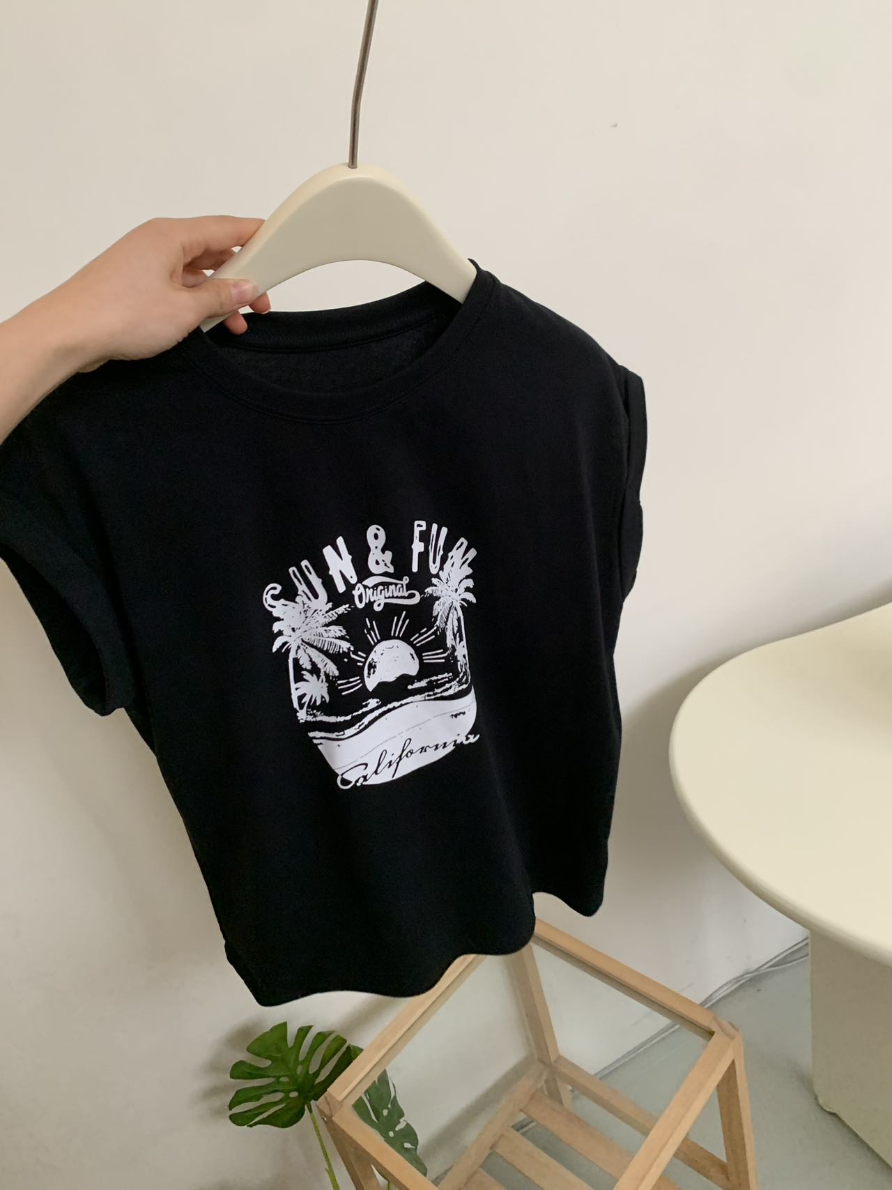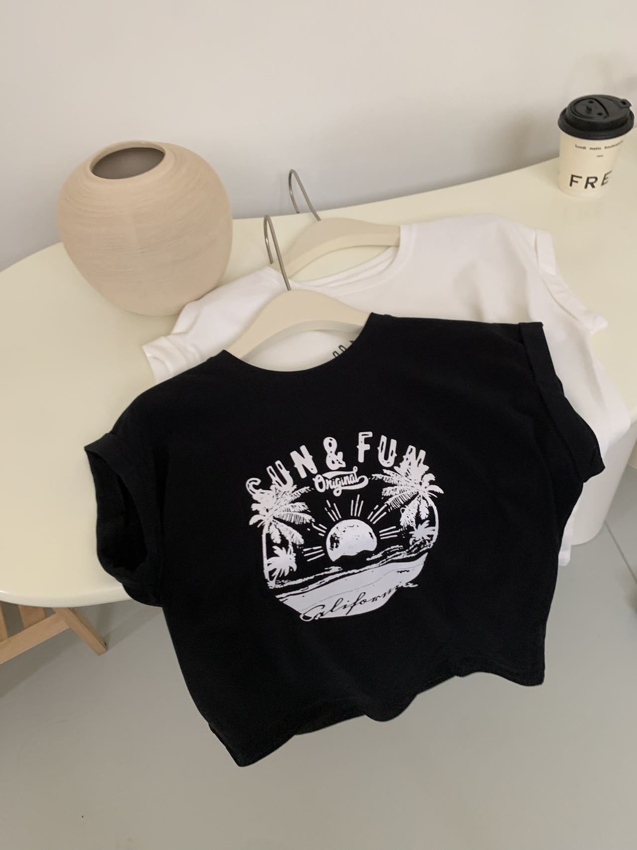 2025 Verão Nova Camiseta Estampada Retrô Americana de Manga Babado para Mulheres, Top Casual Simples e Versátil, Camiseta Básica Americana da Moda