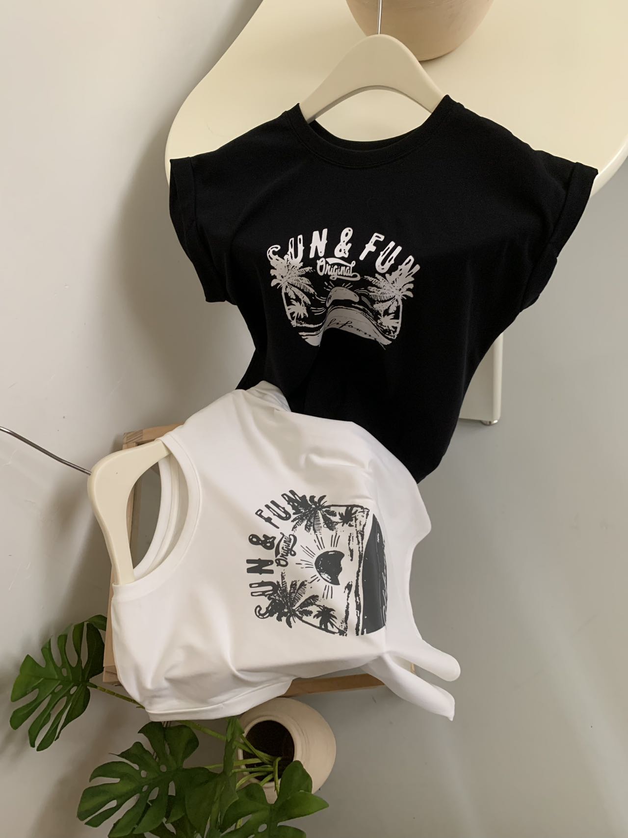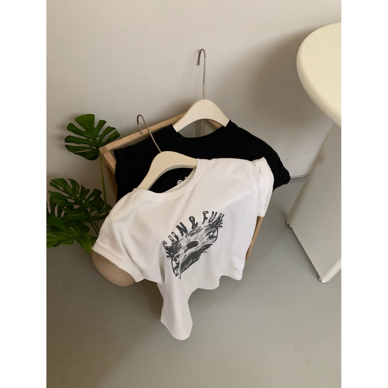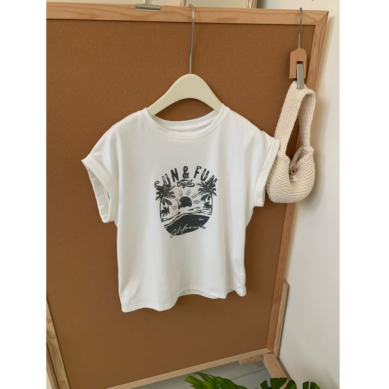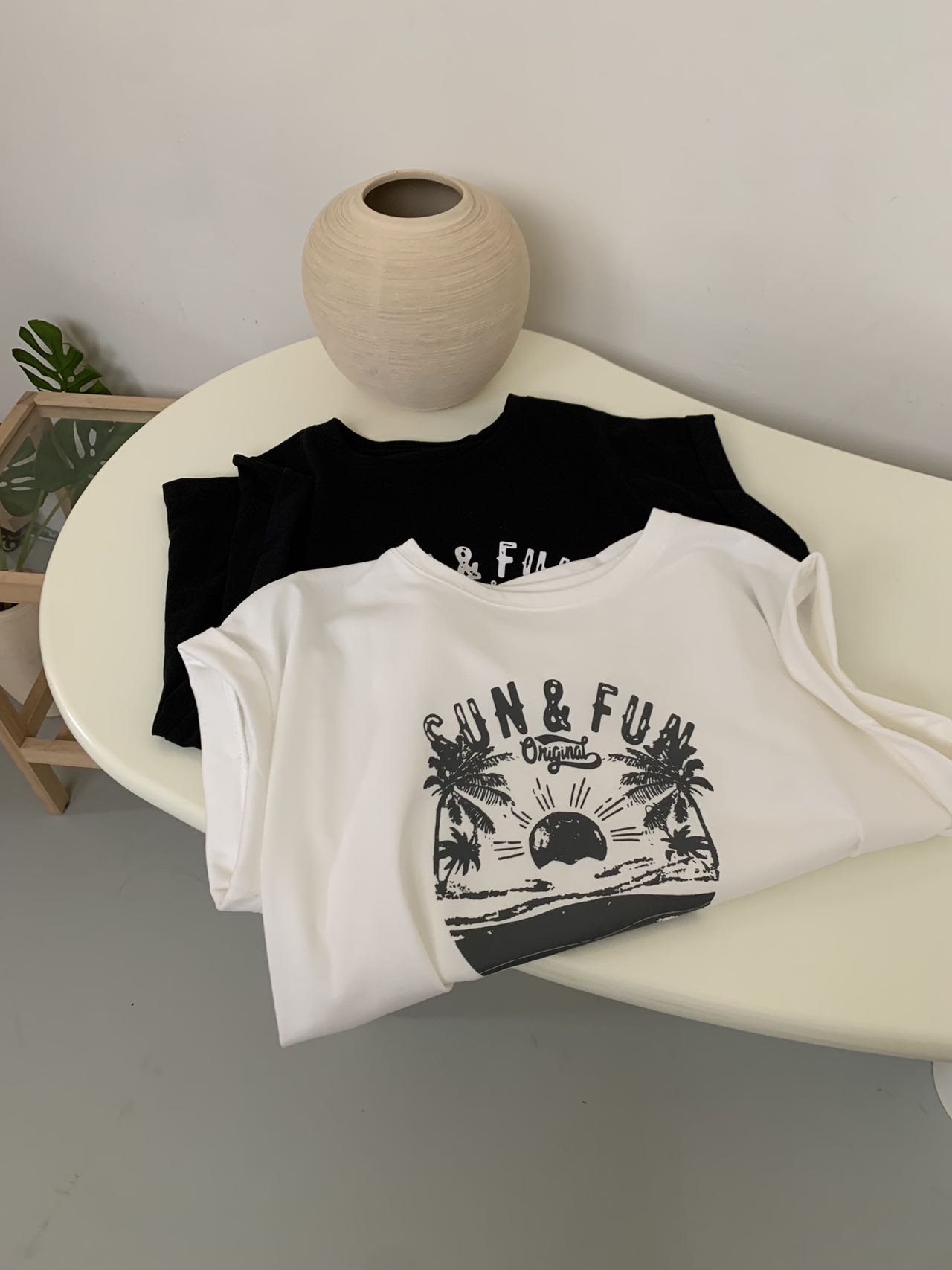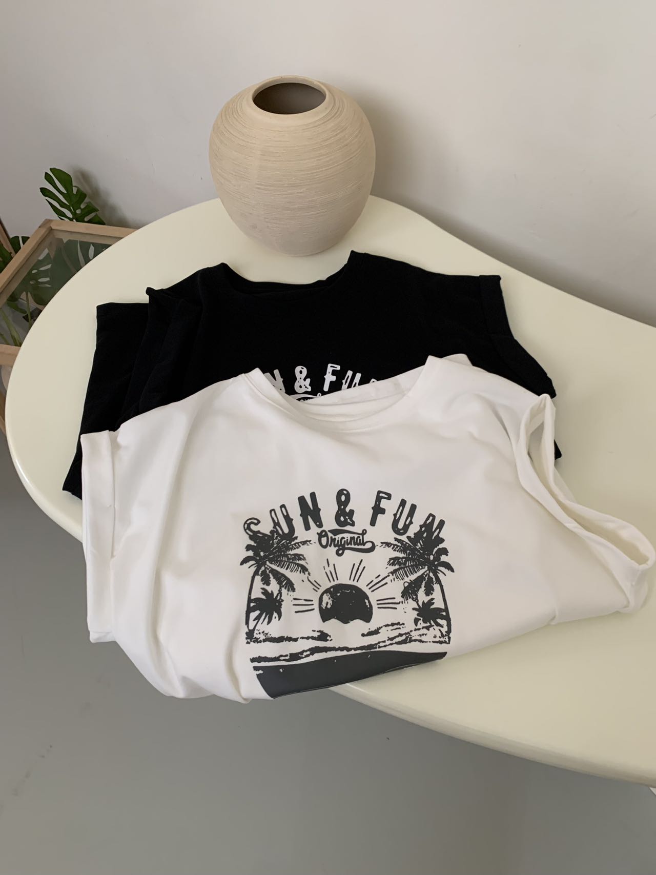 2025 Verão Nova Camiseta Estampada Retrô Americana de Manga Babado para Mulheres, Top Casual Simples e Versátil, Camiseta Básica Americana da Moda