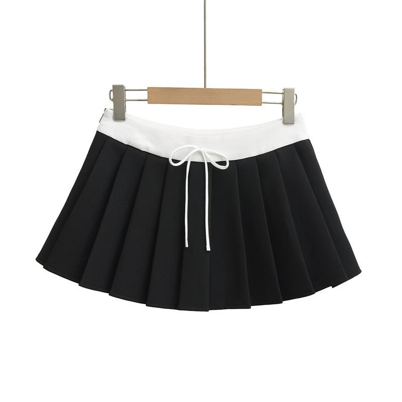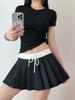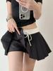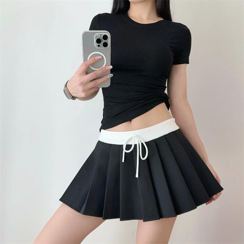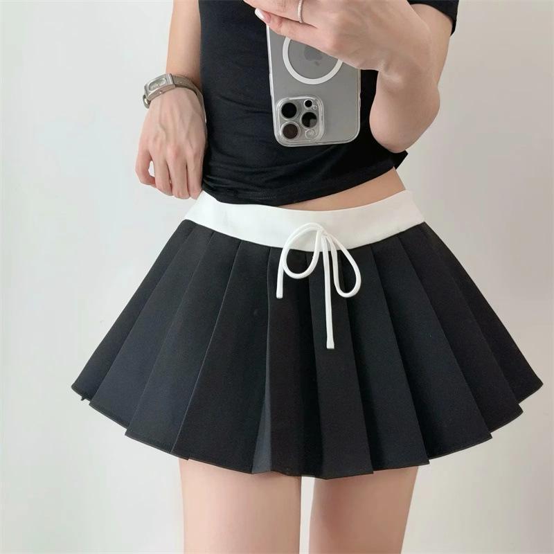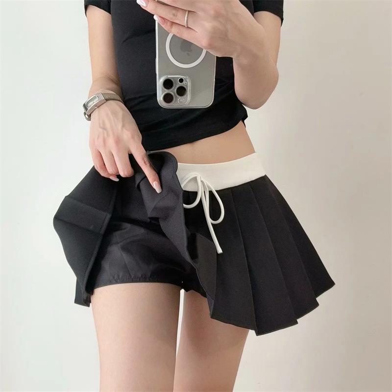 Saia Plissada de Cintura Dupla com Recortes Estilo Faculdade para Mulheres 2025 Verão Nova Hot Girl Look Emagrecedor Versátil Saia Anti-Exposição