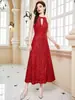 Novo Europeu e Americano Transfronteiriço Cor Sólida Paetê Elegante Justo Longo Sem Mangas Amazon Sem Costas Vestido Longo