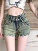 Shorts Jeans Americanos de Rua para Garota Quente Feminino Verão Novo Retro Rebites Slim Sexy Justo Modelador de Quadril Calças Curtas da Moda