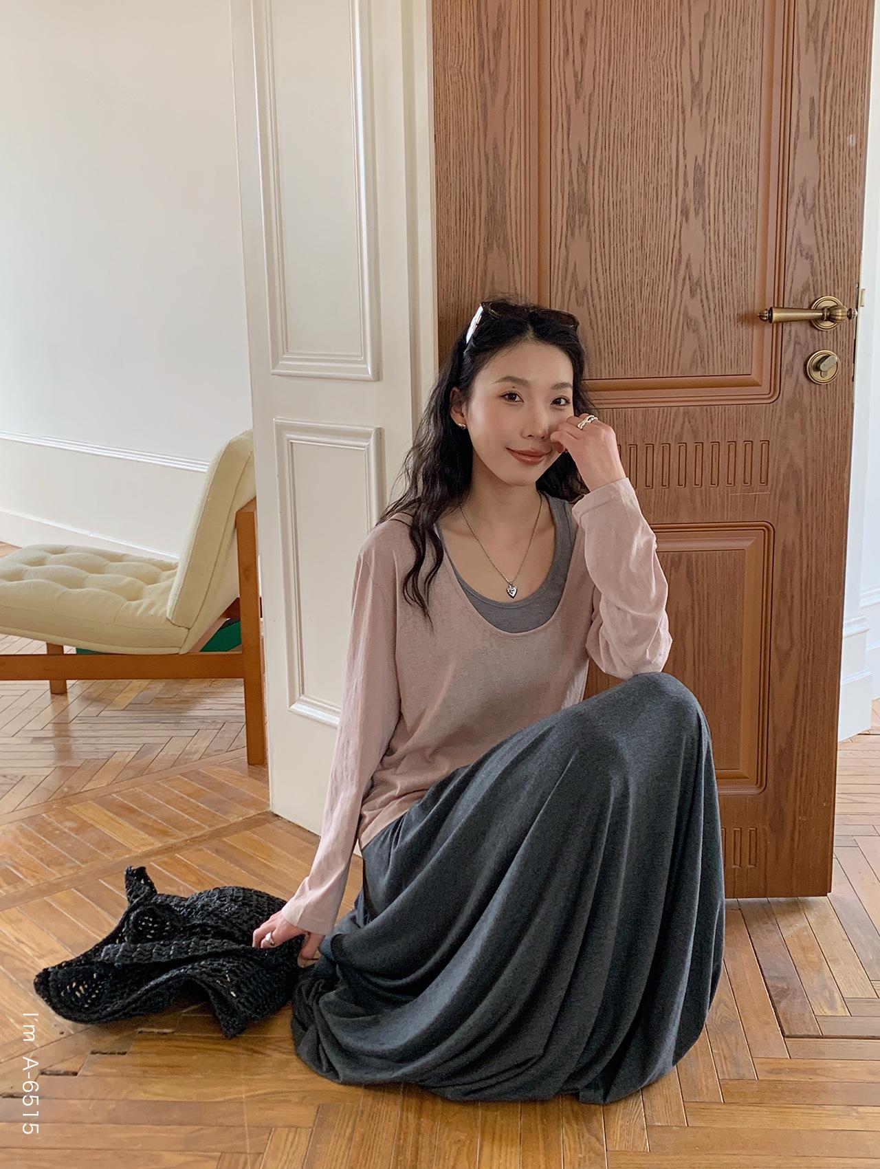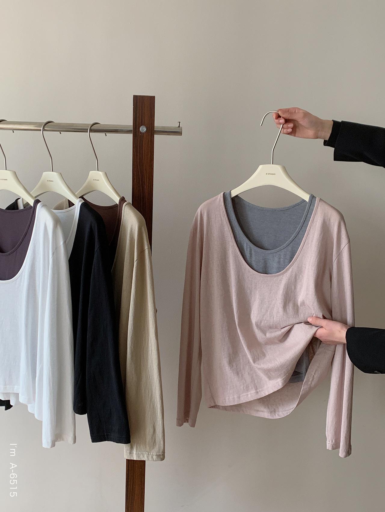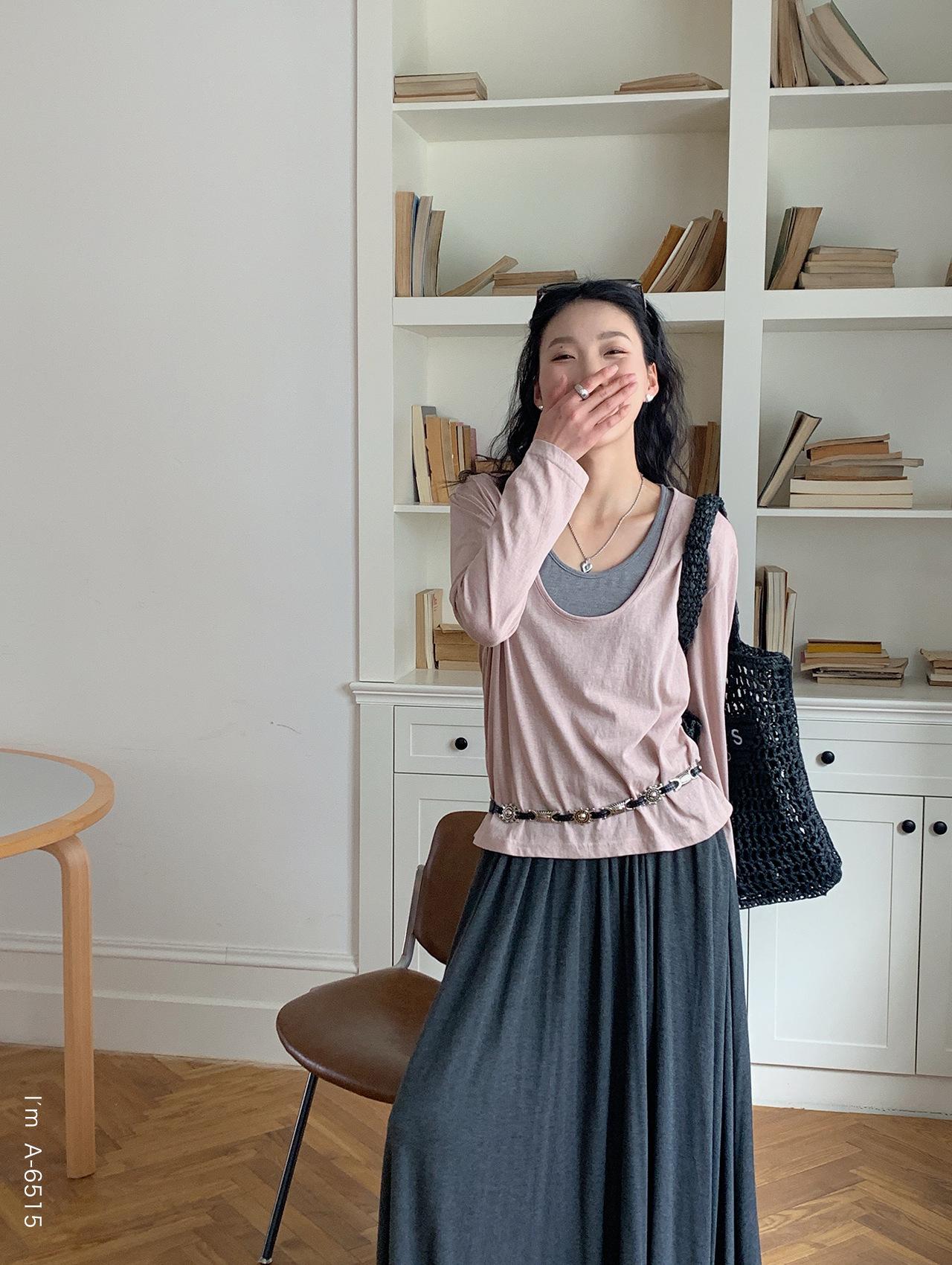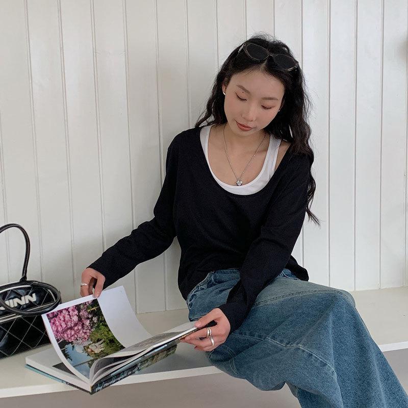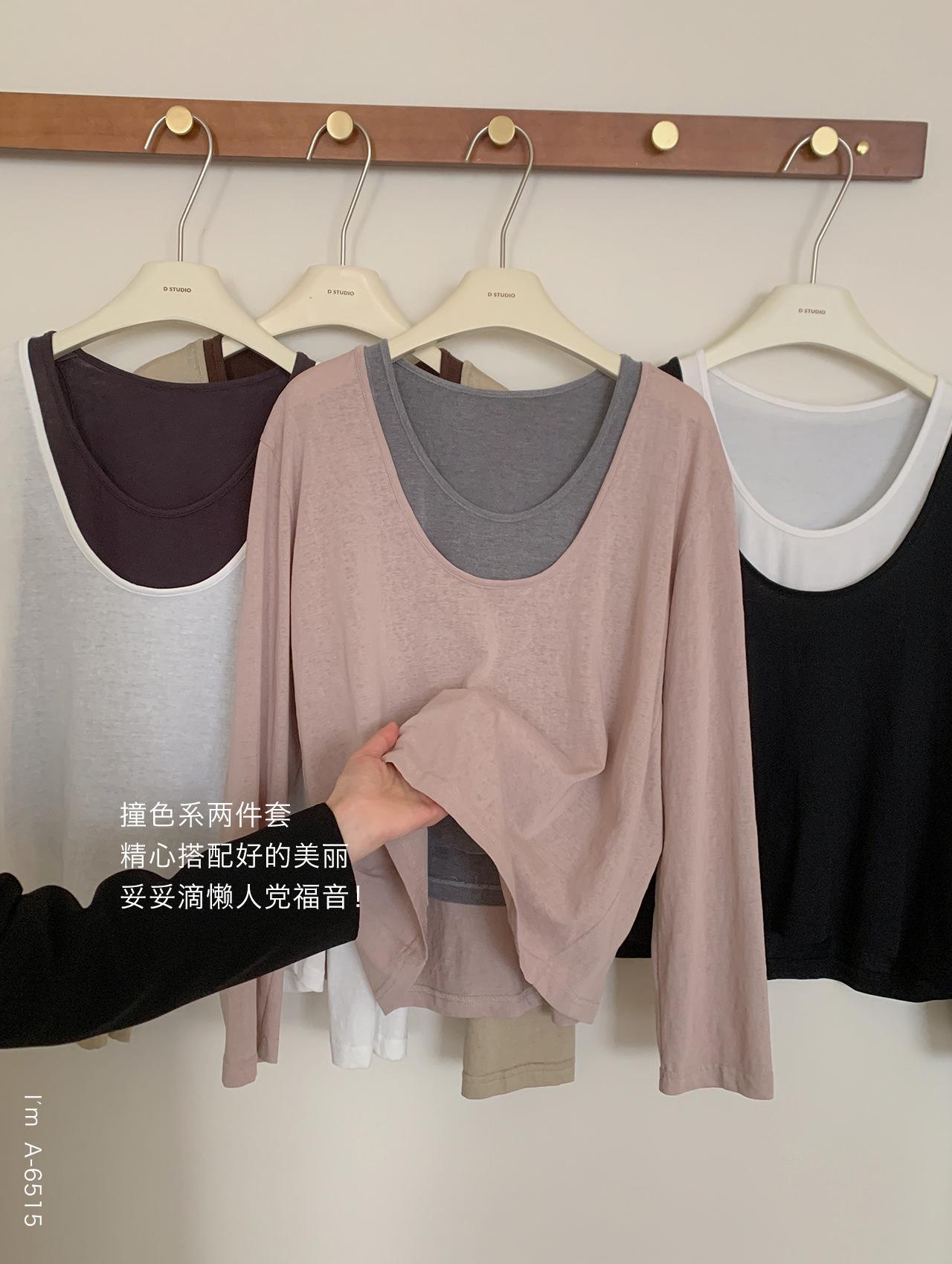 Du Xiaozhai Primavera y Verano Nuevo Diseño Sentido Ligero Apilado Chaleco Camiseta Base Dos piezas Sentido de Alta Gama Top de Manga Larga para Mujer