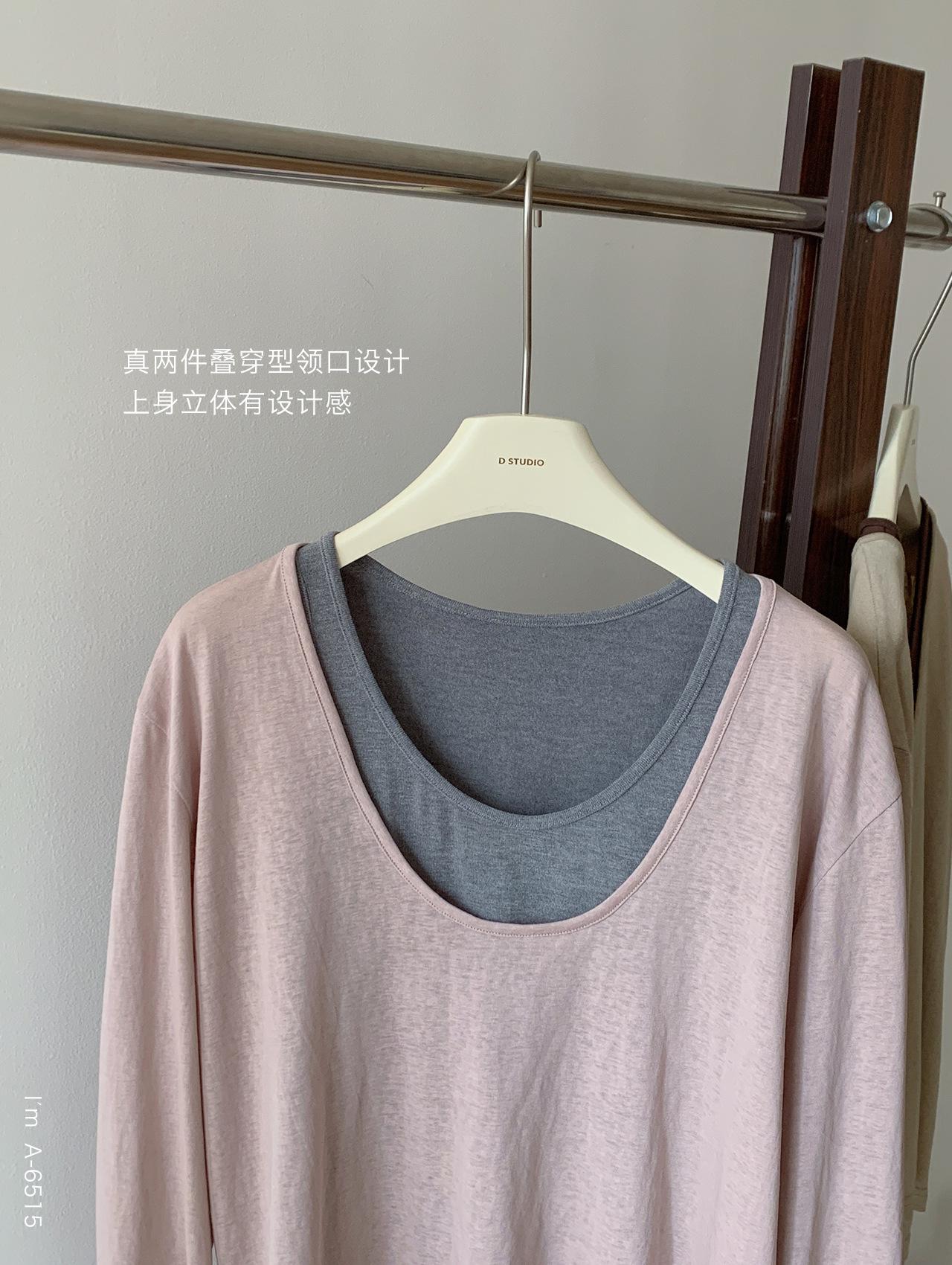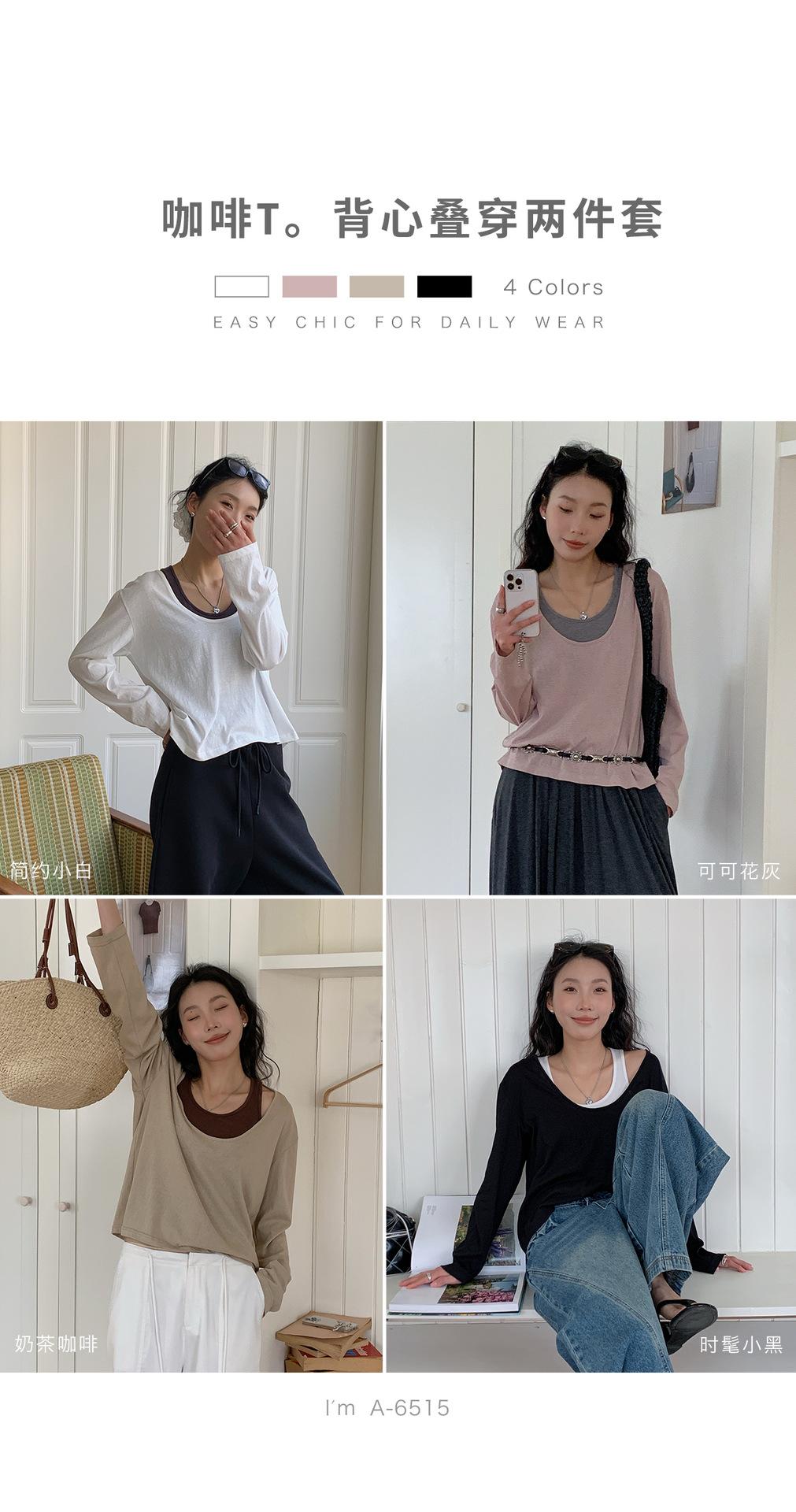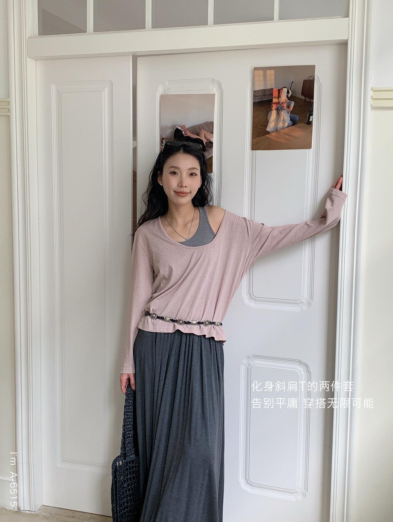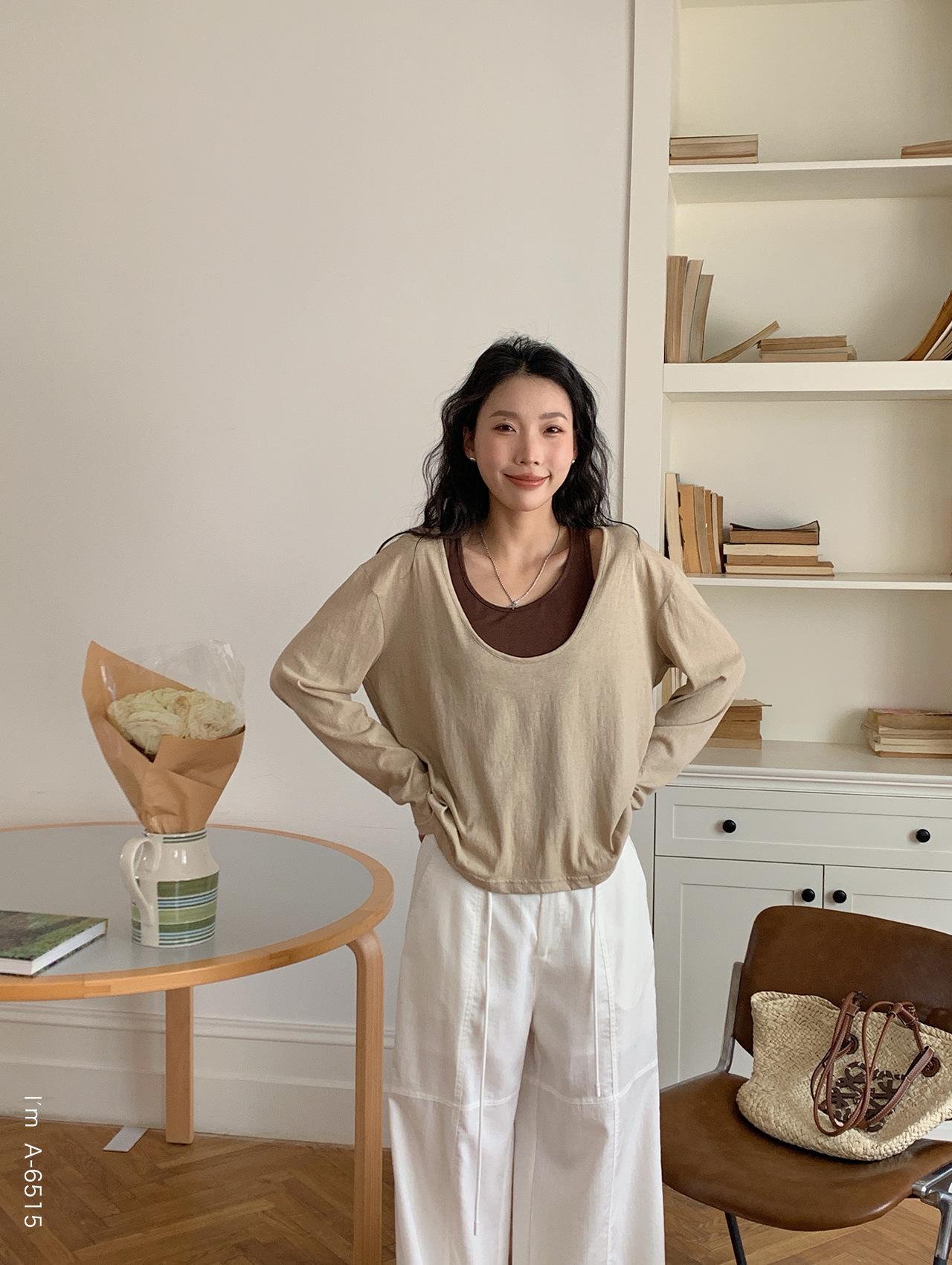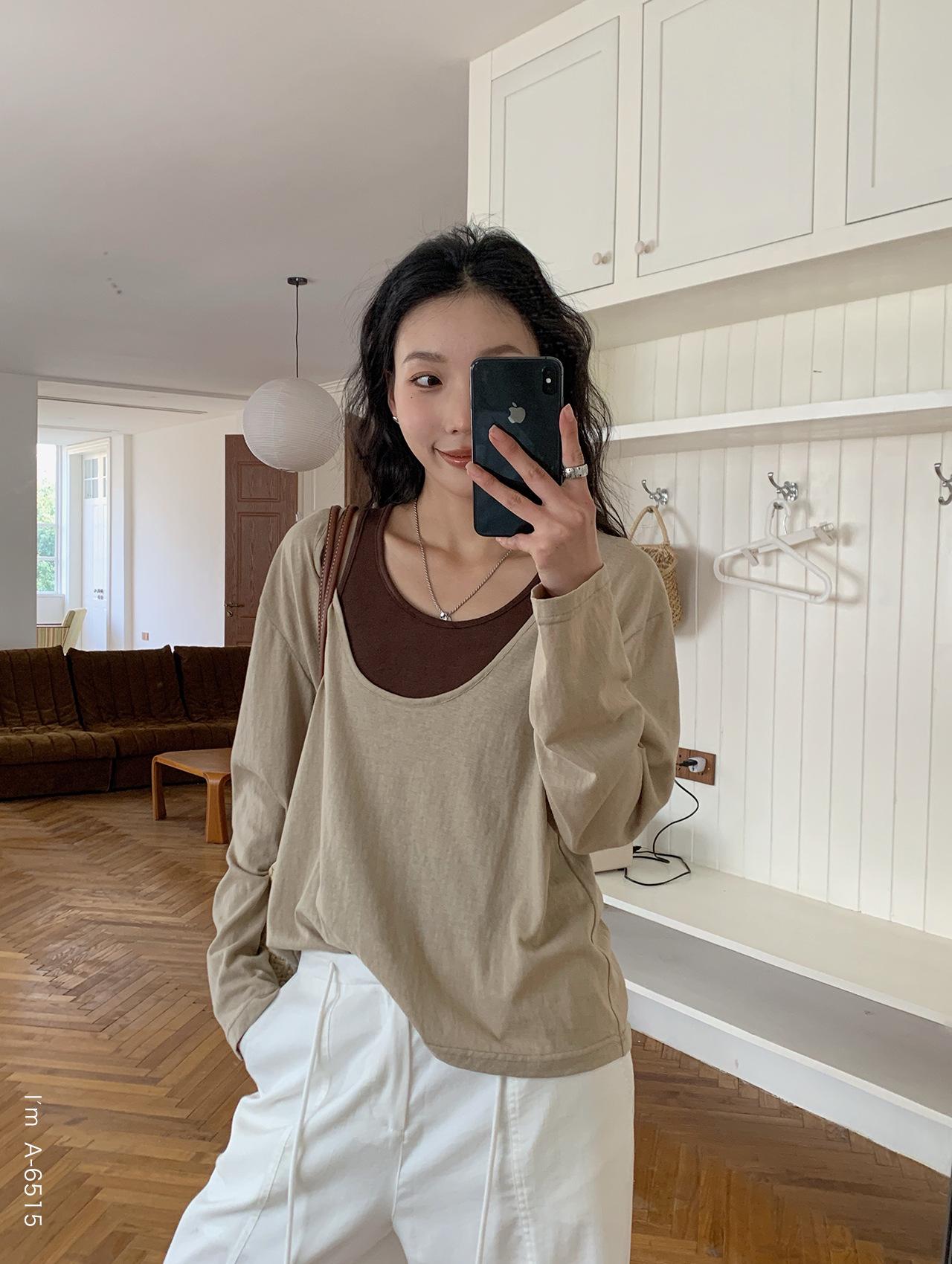 Du Xiaozhai Primavera y Verano Nuevo Diseño Sentido Ligero Apilado Chaleco Camiseta Base Dos piezas Sentido de Alta Gama Top de Manga Larga para Mujer