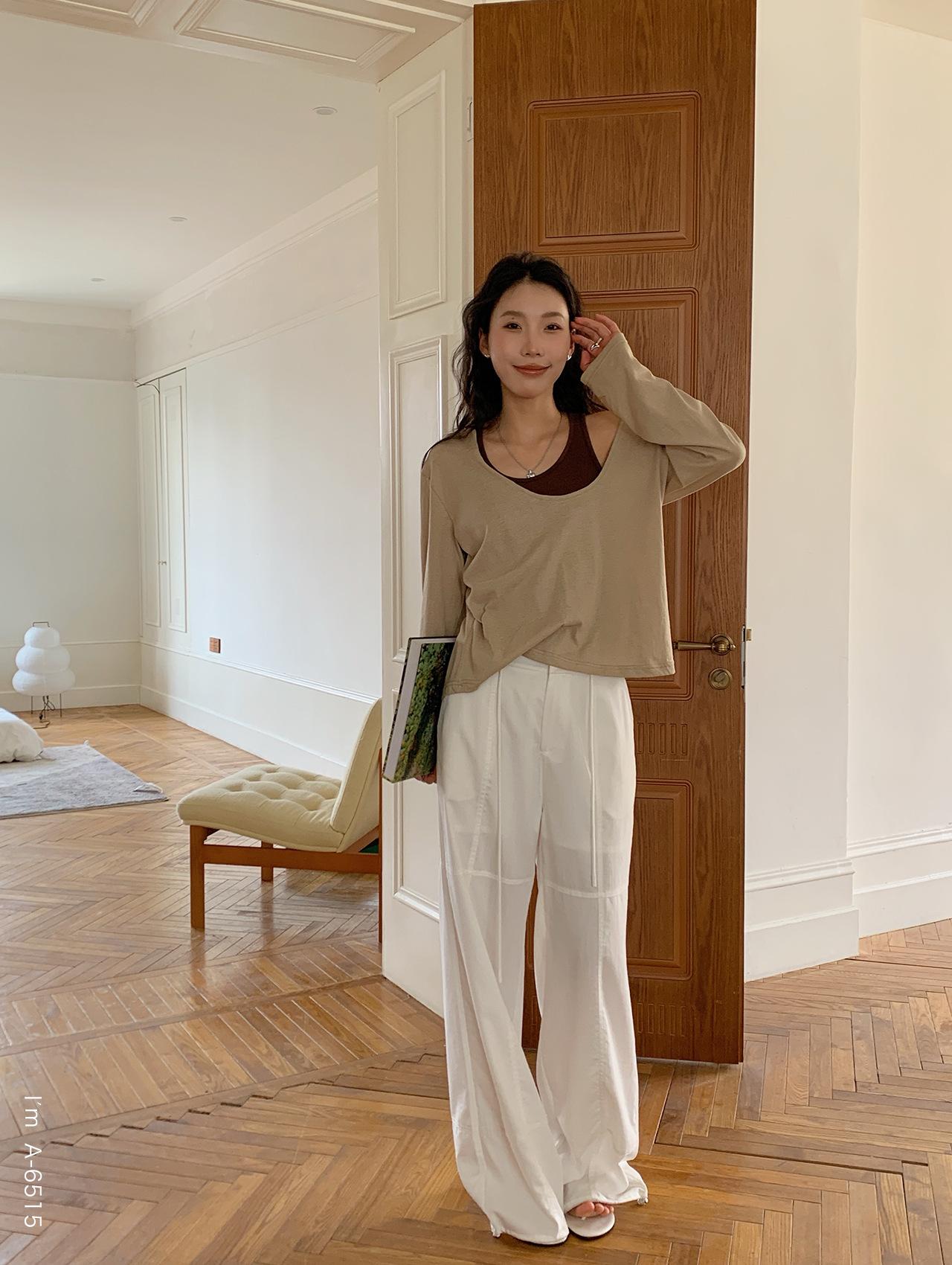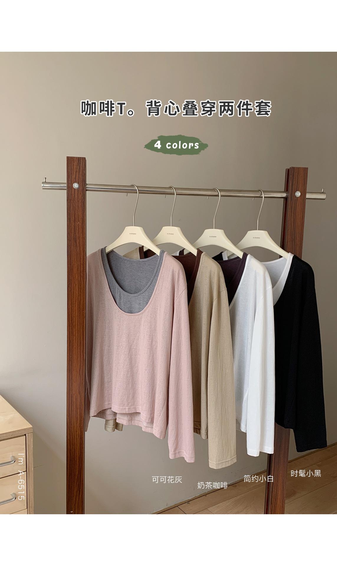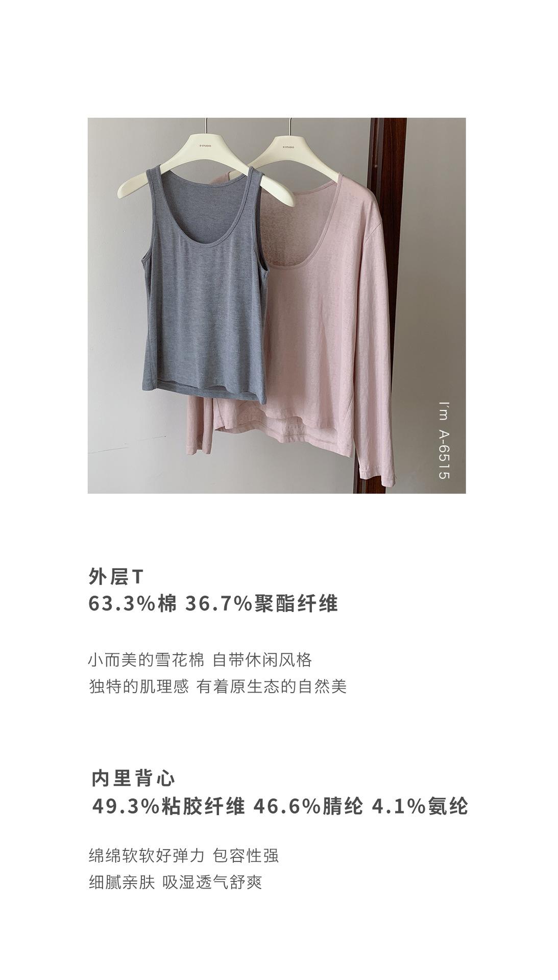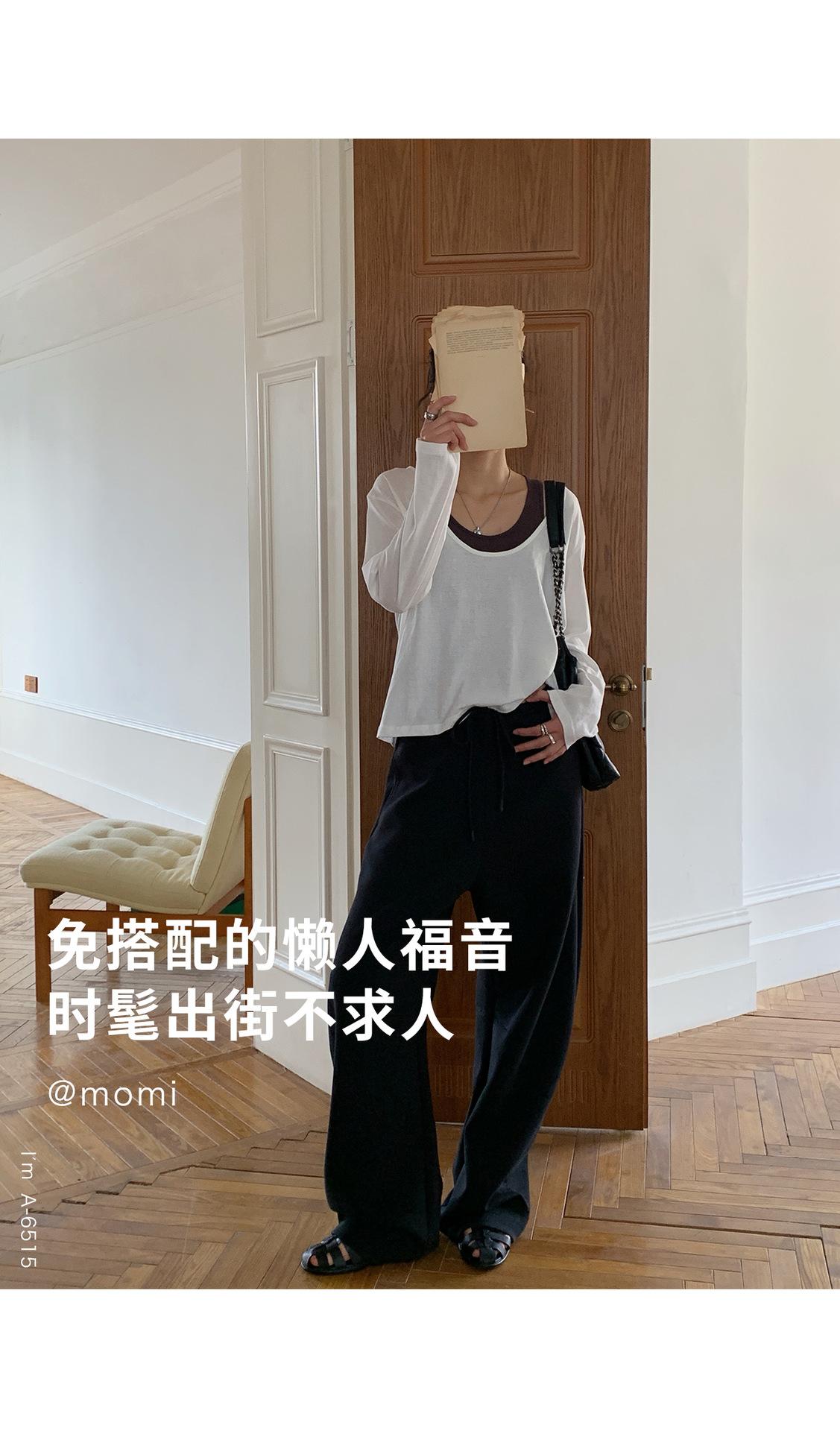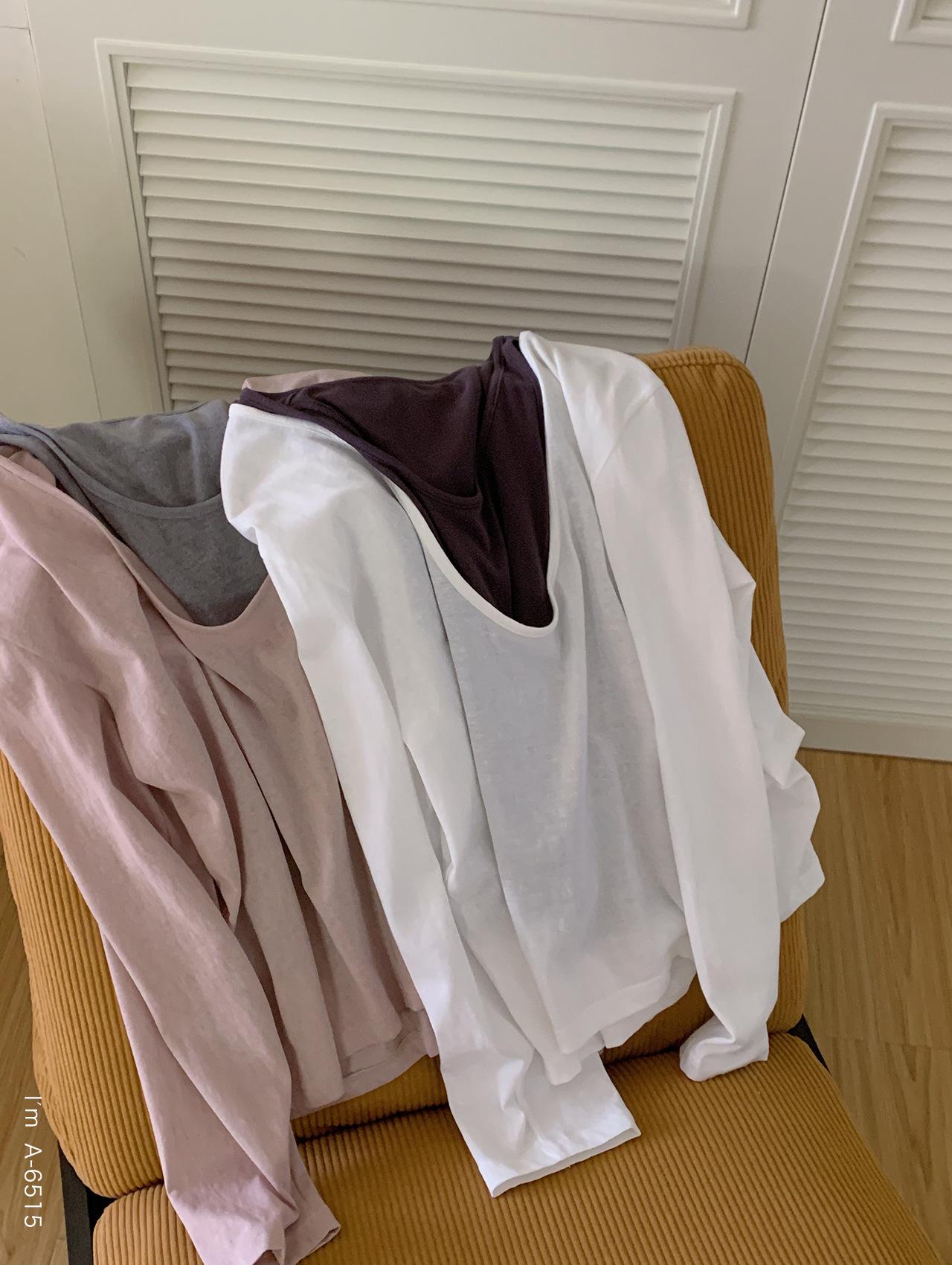 Du Xiaozhai Primavera y Verano Nuevo Diseño Sentido Ligero Apilado Chaleco Camiseta Base Dos piezas Sentido de Alta Gama Top de Manga Larga para Mujer