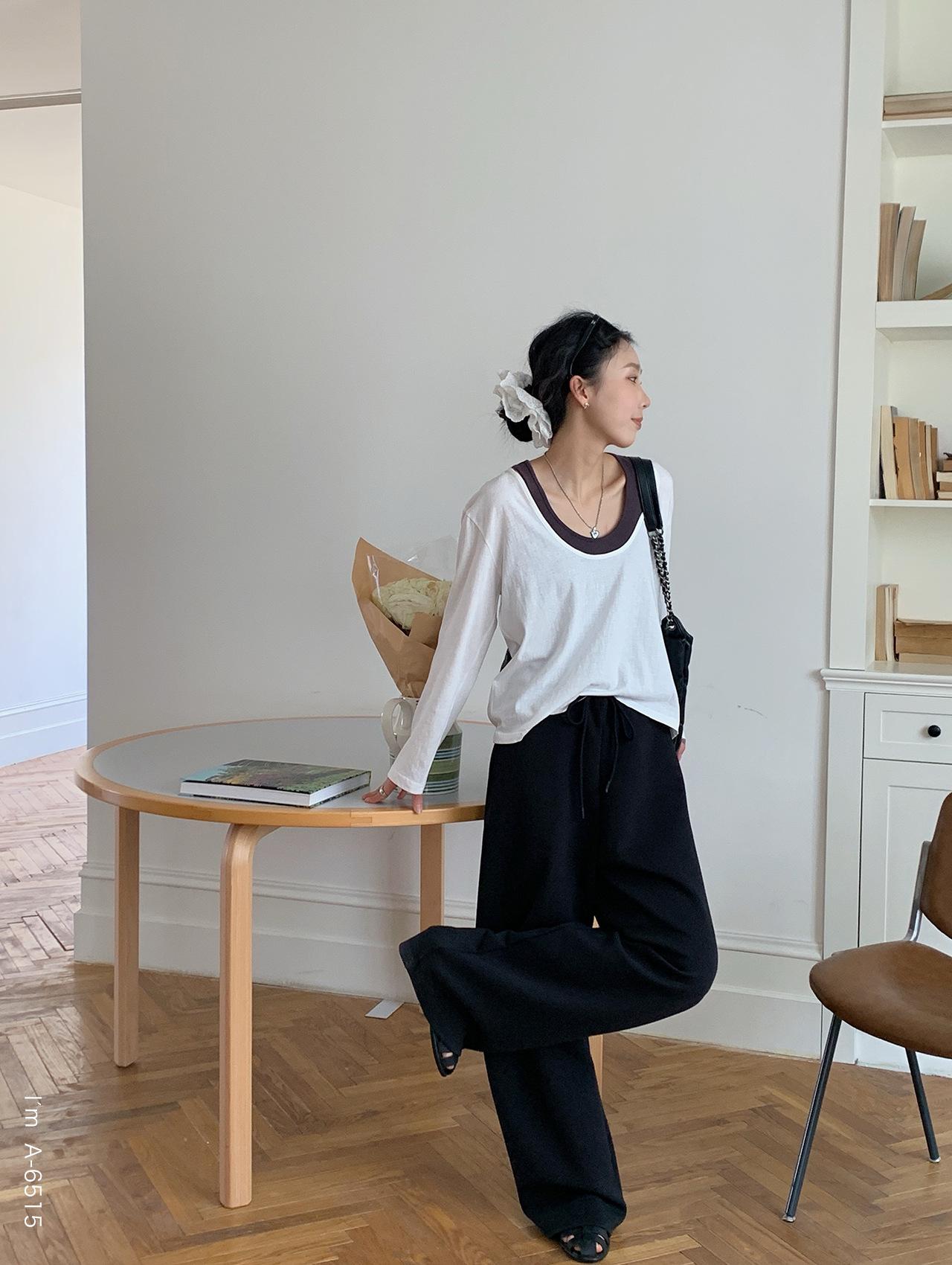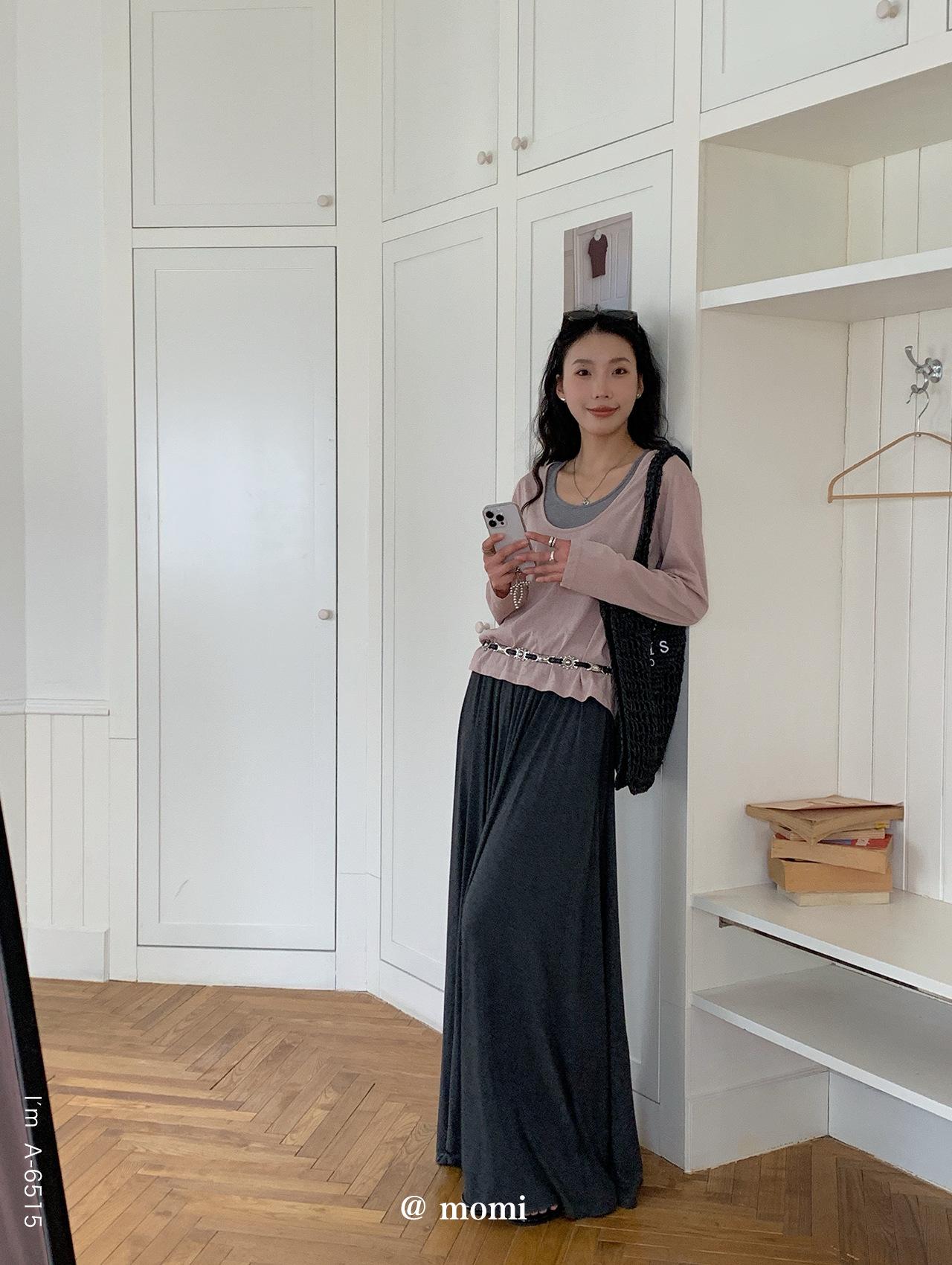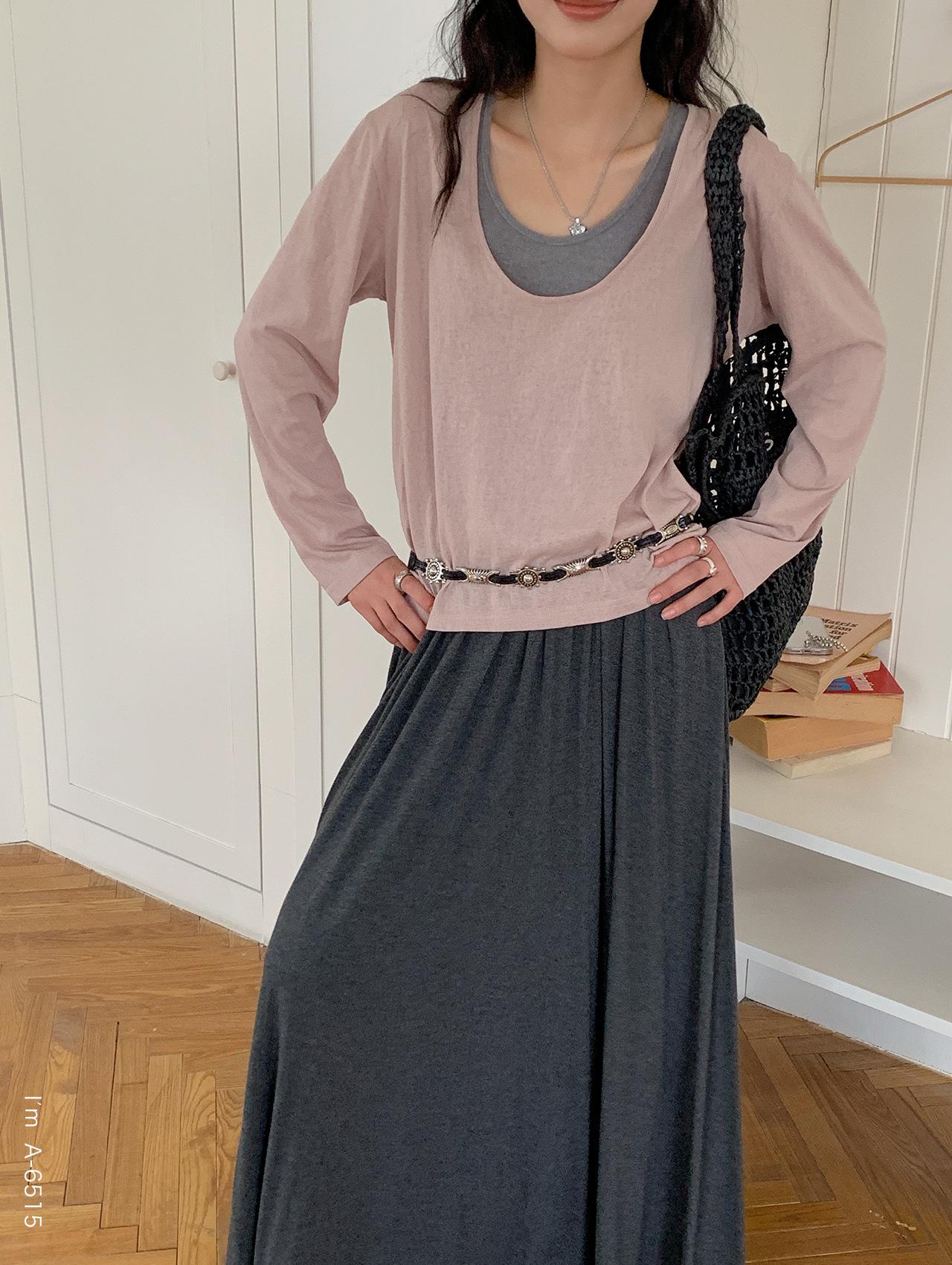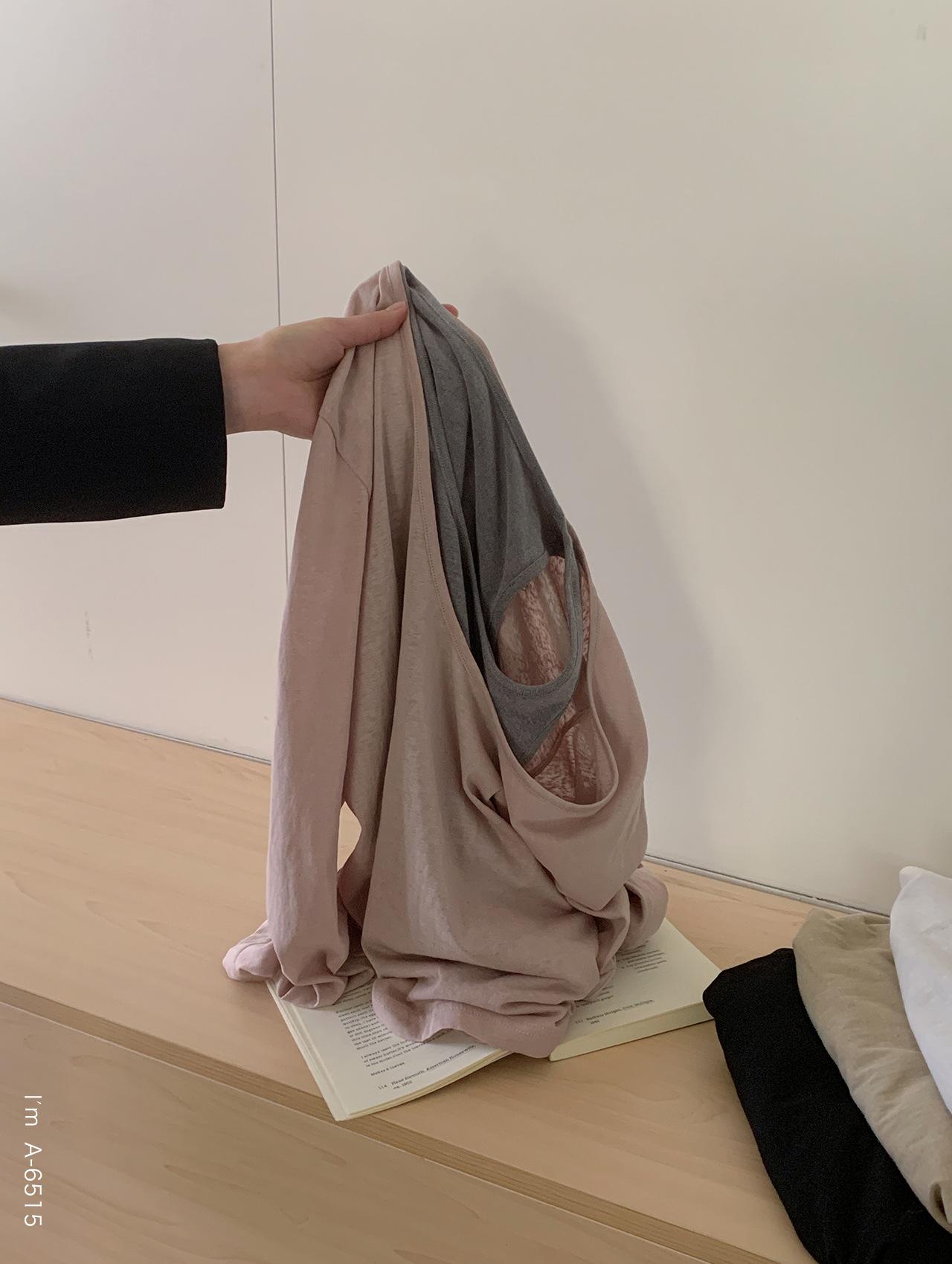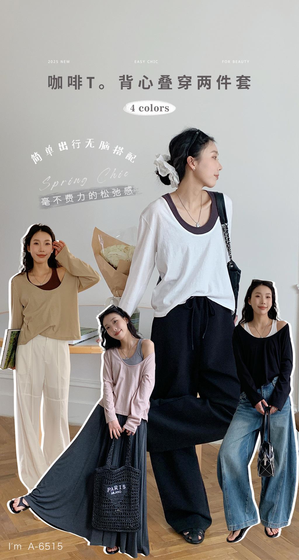 Du Xiaozhai Primavera y Verano Nuevo Diseño Sentido Ligero Apilado Chaleco Camiseta Base Dos piezas Sentido de Alta Gama Top de Manga Larga para Mujer