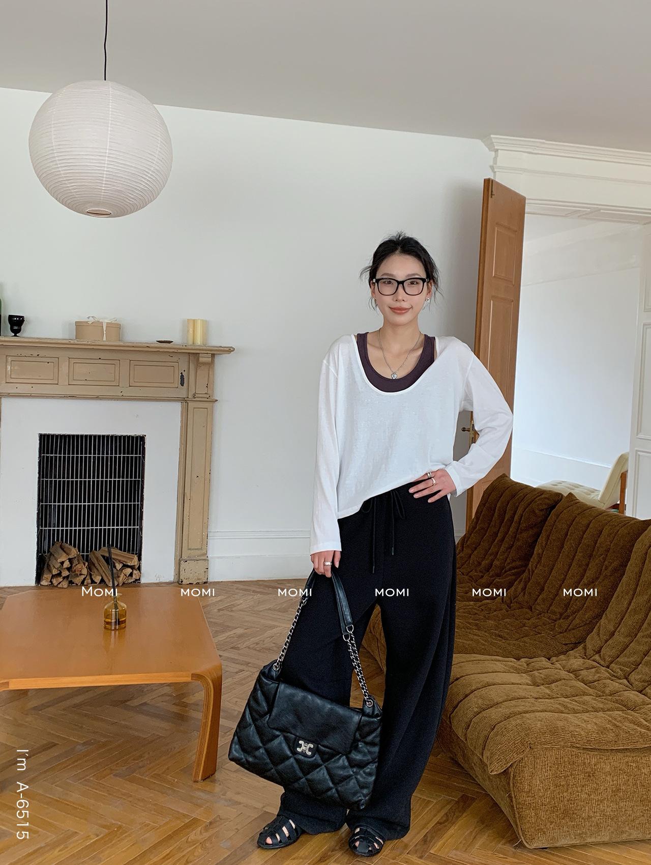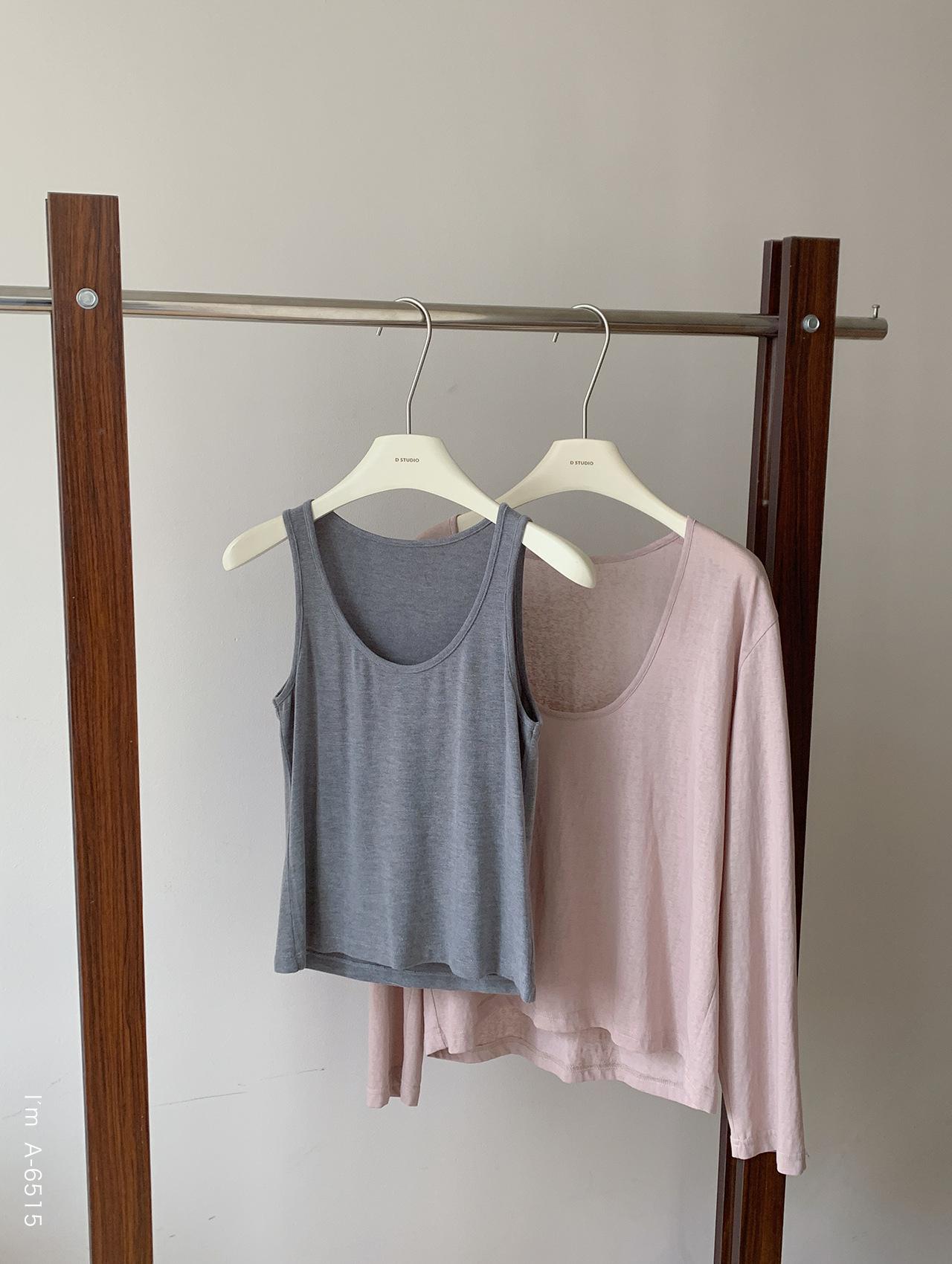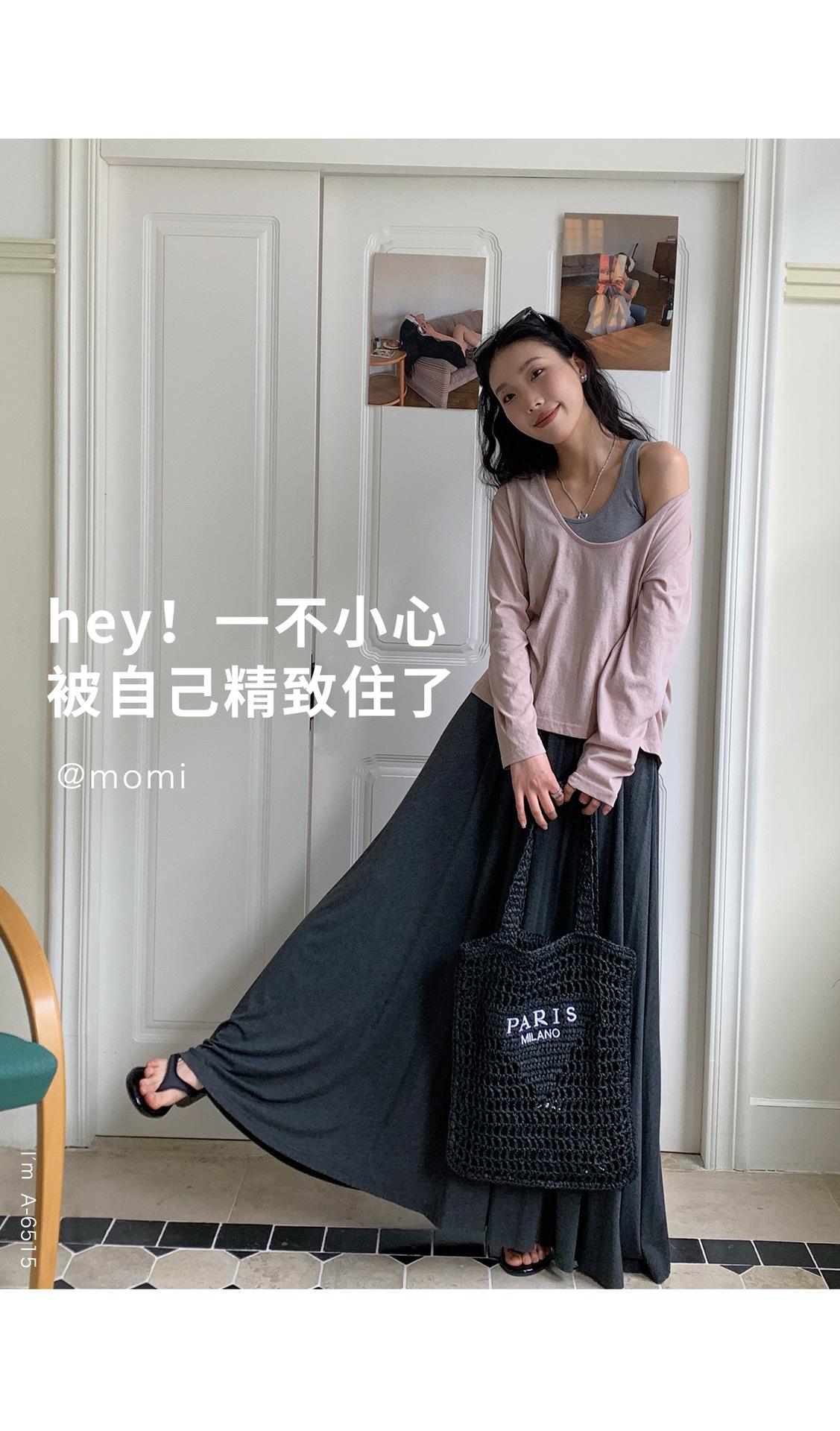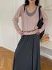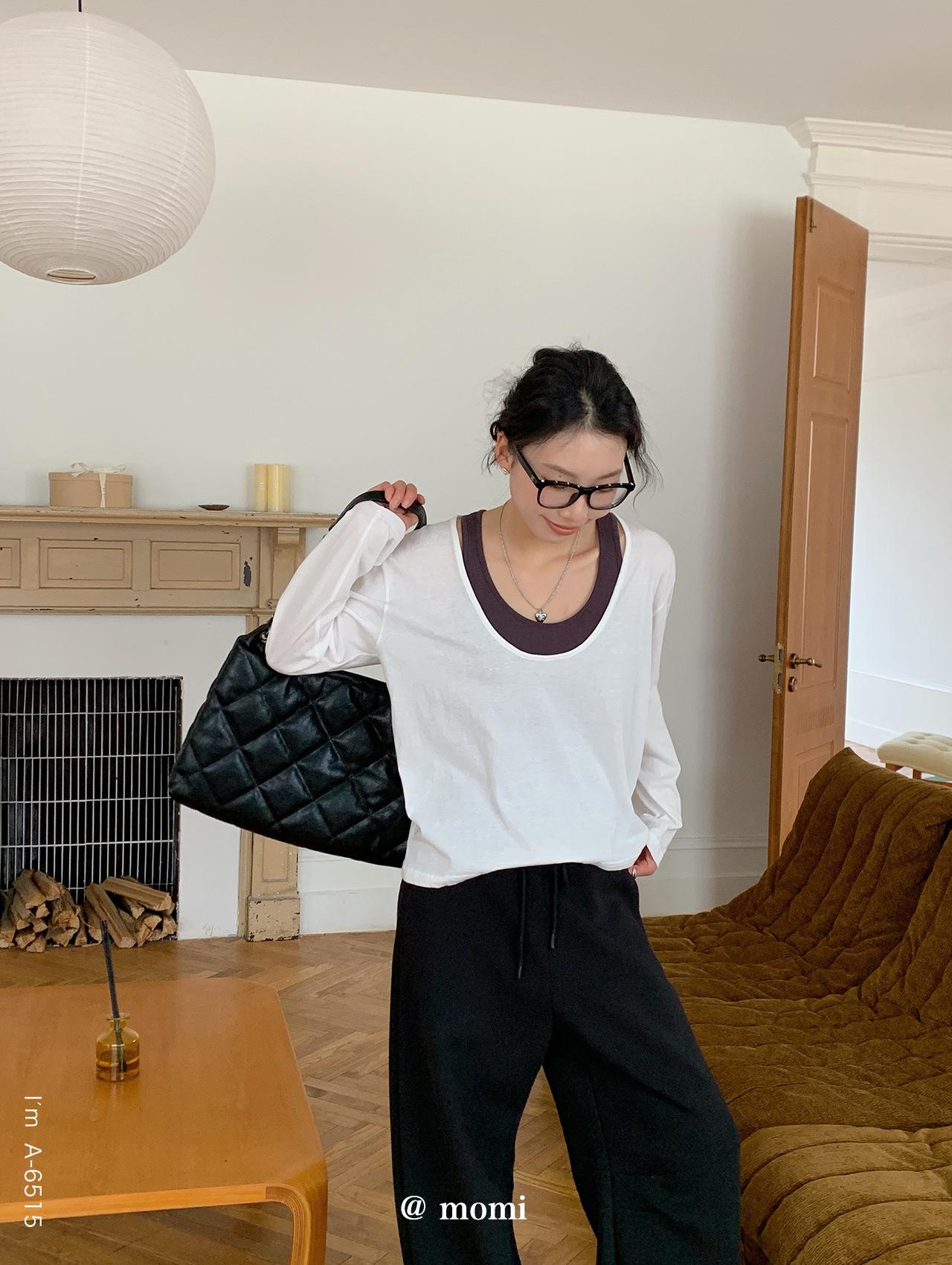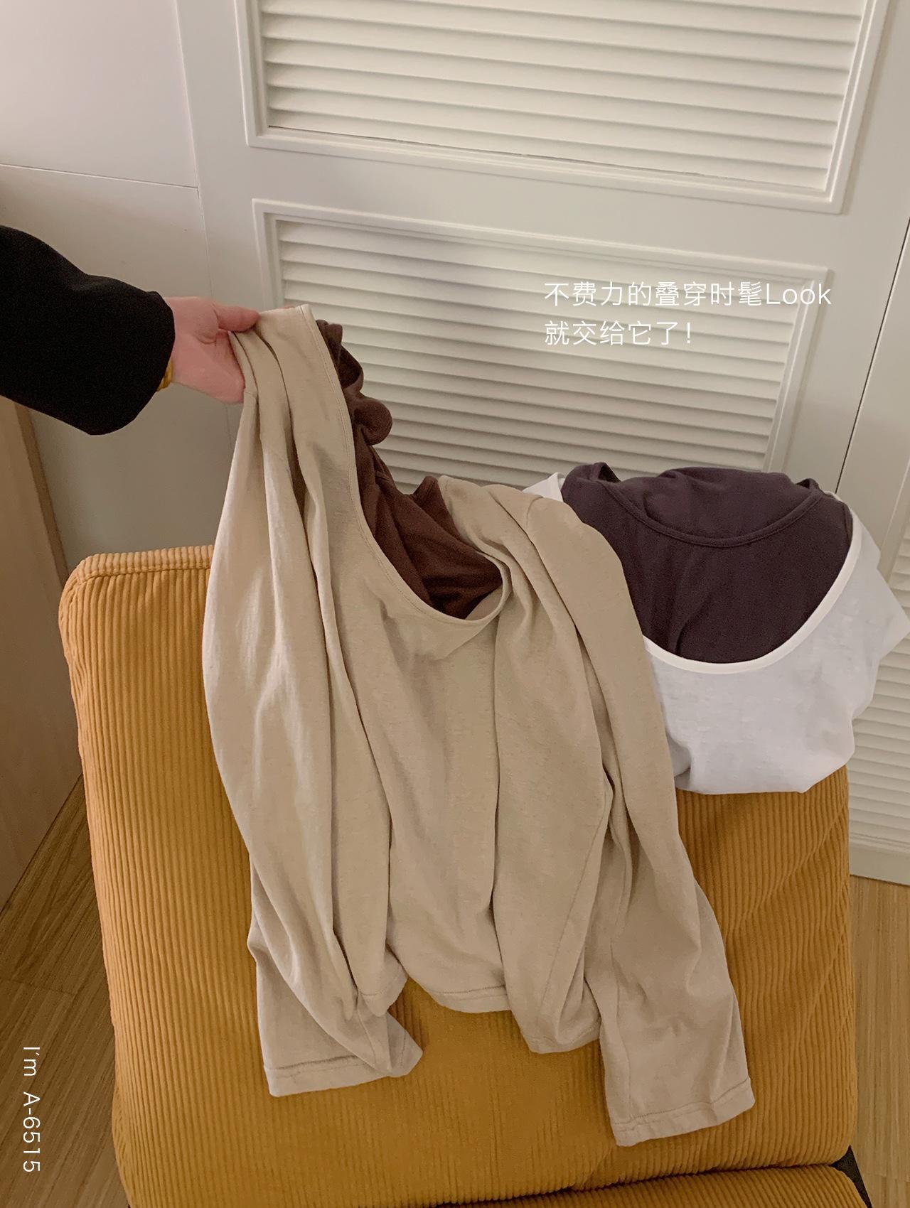 Du Xiaozhai Primavera y Verano Nuevo Diseño Sentido Ligero Apilado Chaleco Camiseta Base Dos piezas Sentido de Alta Gama Top de Manga Larga para Mujer