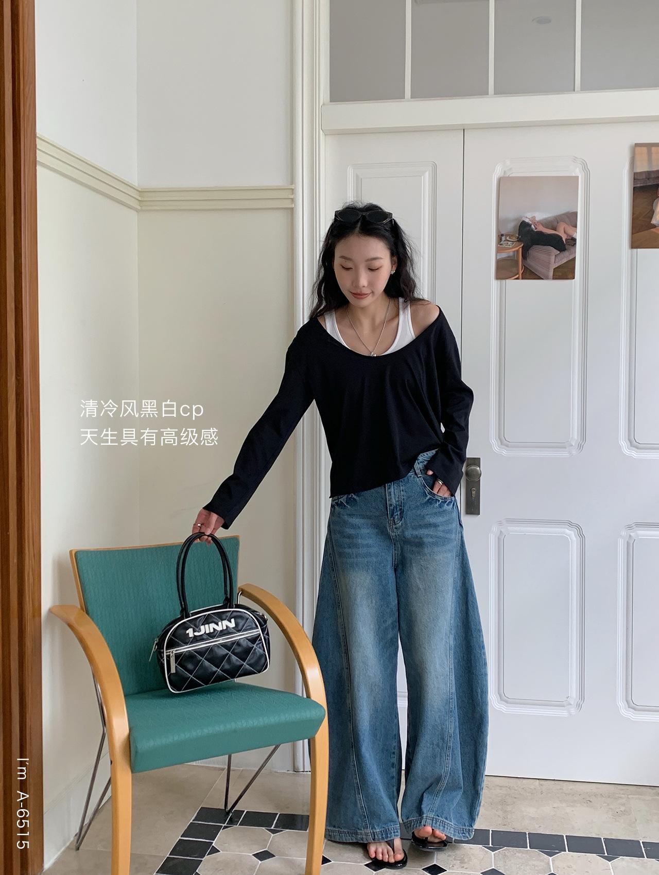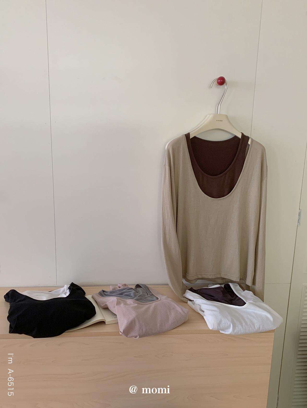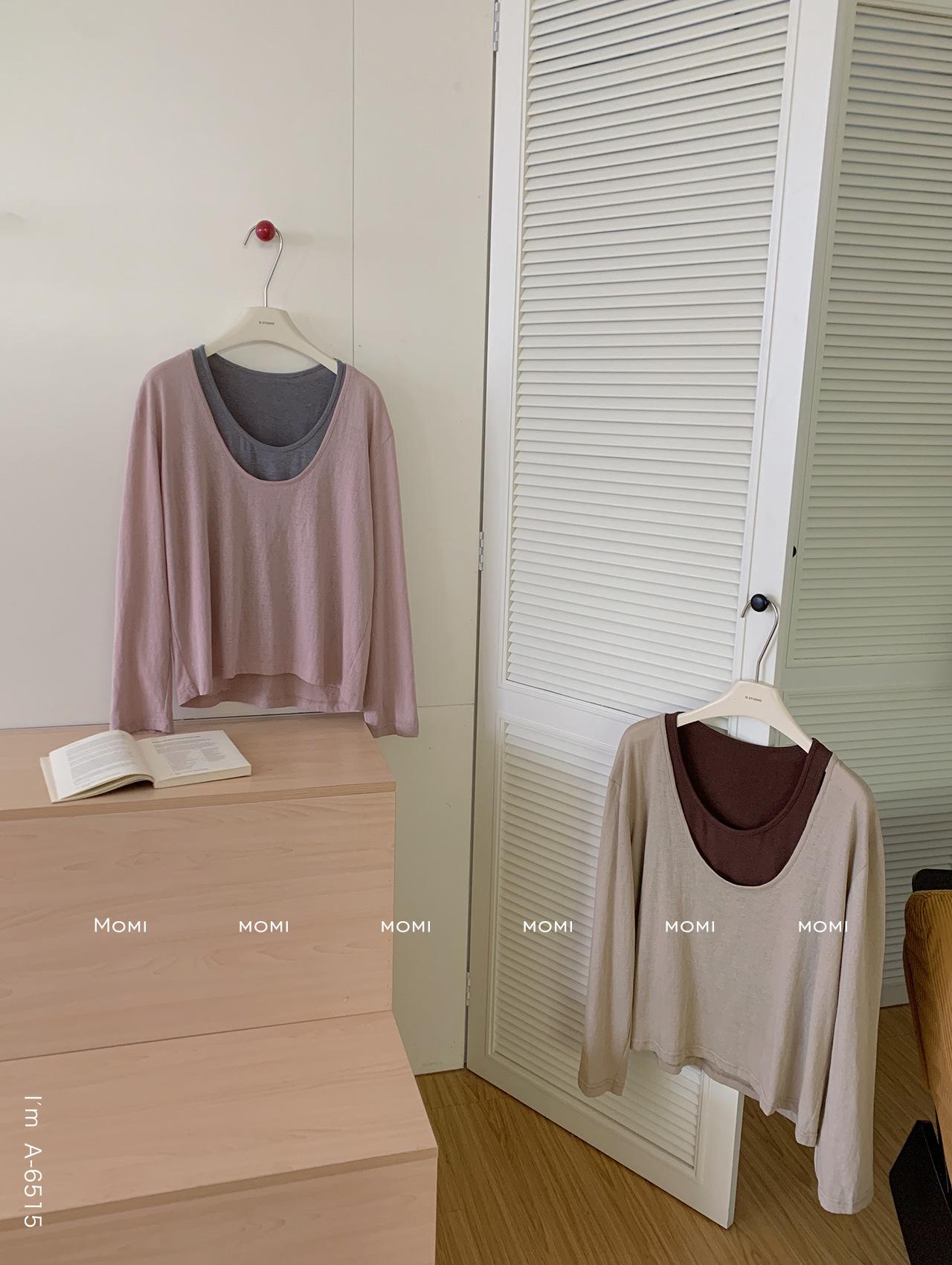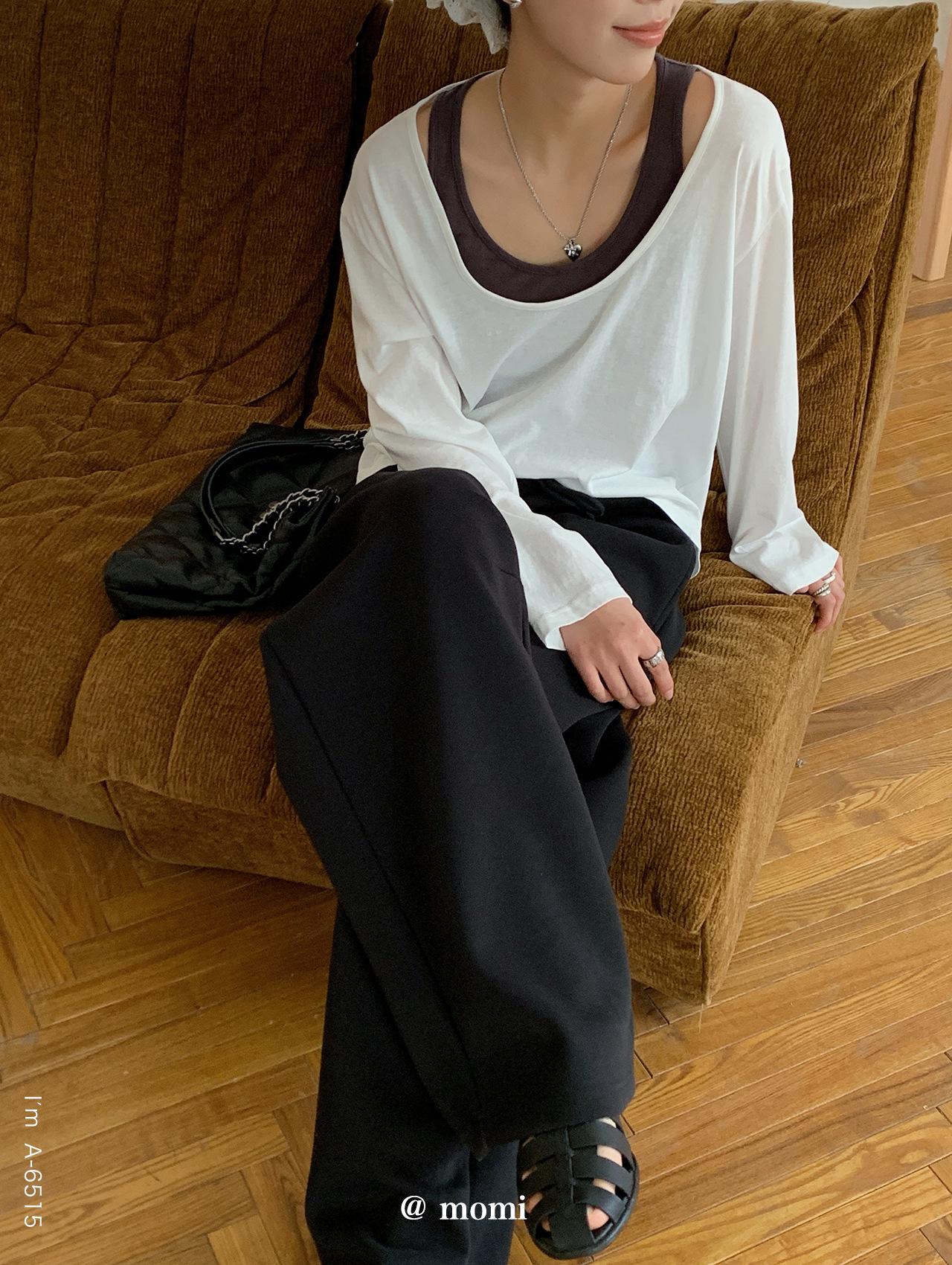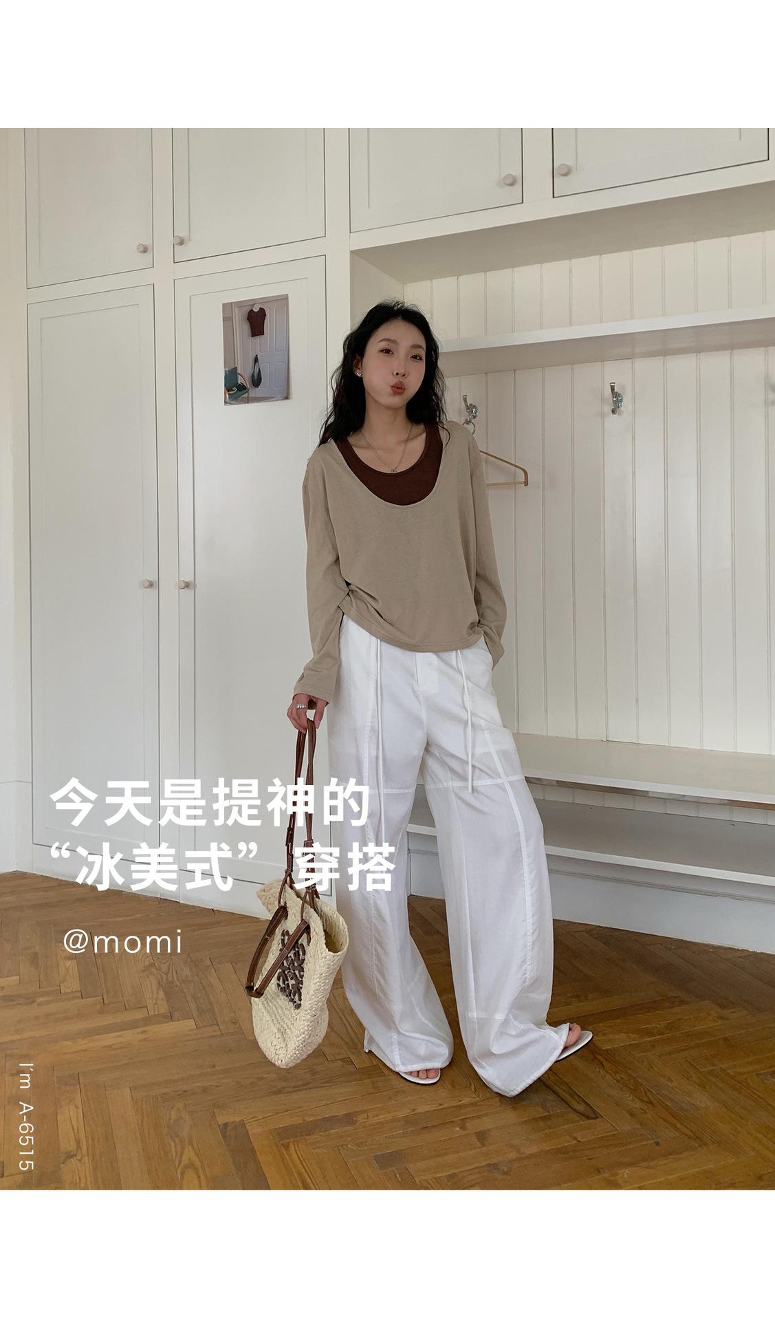 Du Xiaozhai Primavera y Verano Nuevo Diseño Sentido Ligero Apilado Chaleco Camiseta Base Dos piezas Sentido de Alta Gama Top de Manga Larga para Mujer