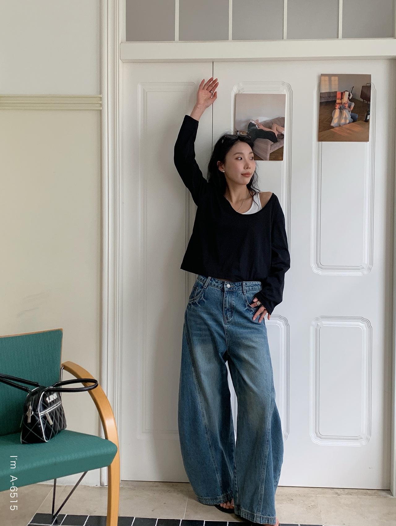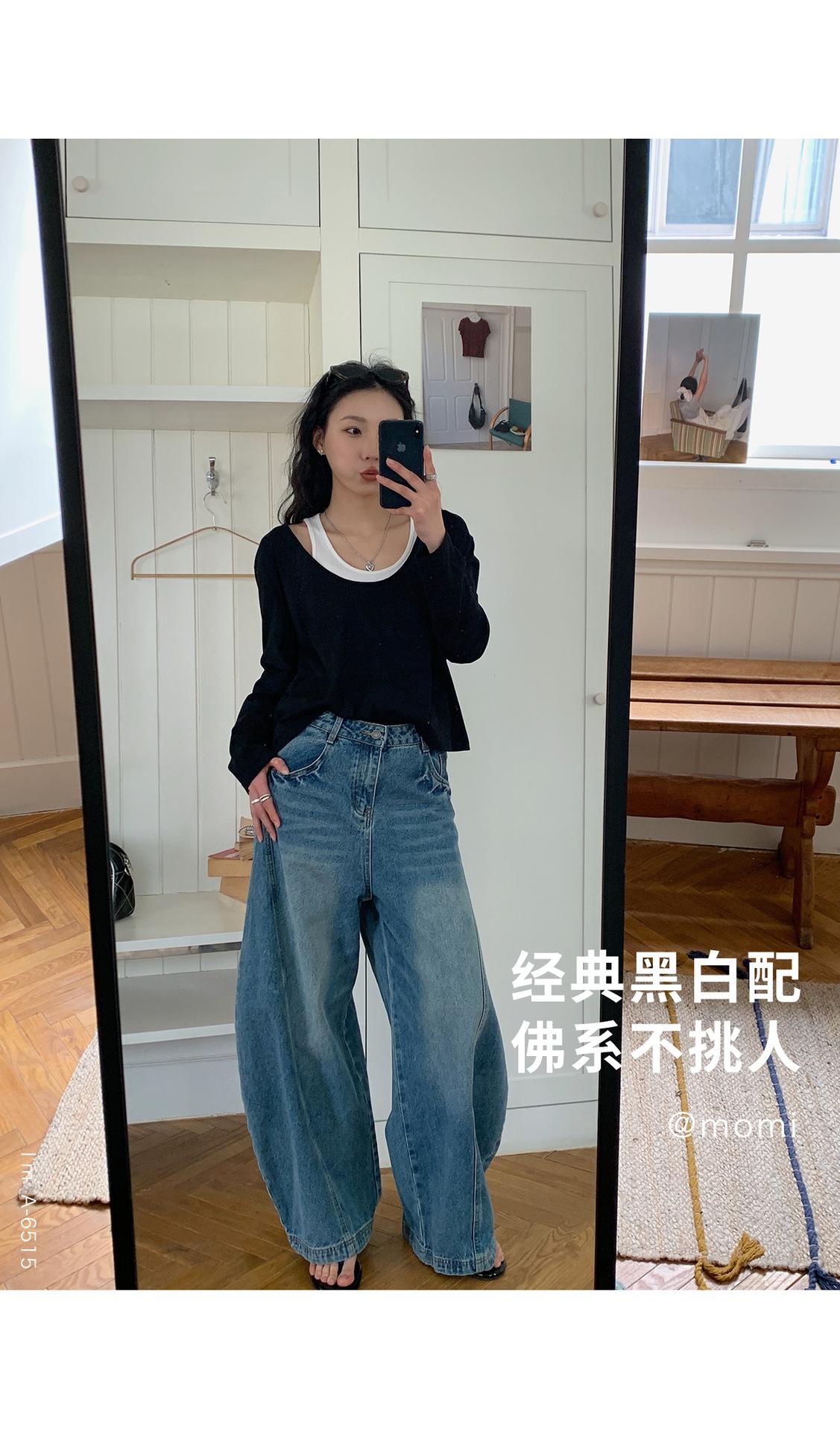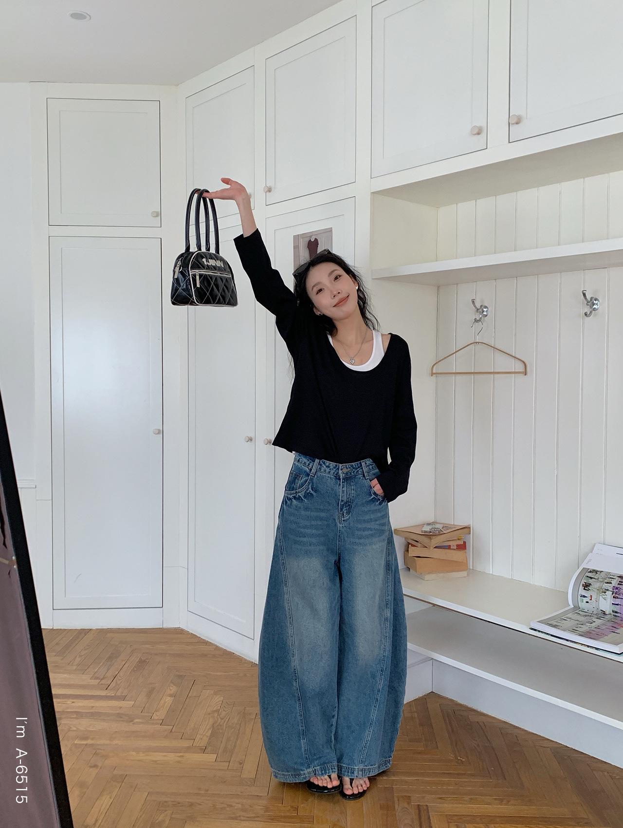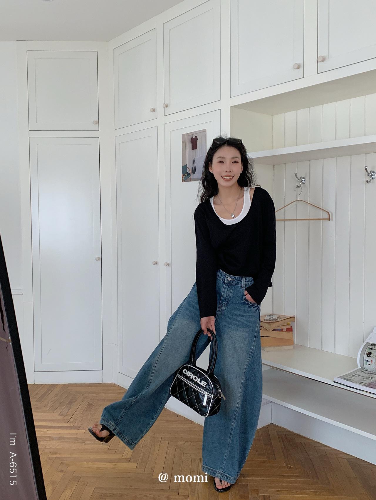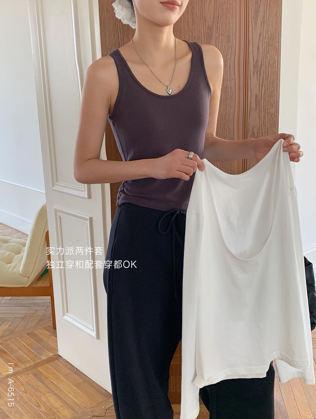 Du Xiaozhai Primavera y Verano Nuevo Diseño Sentido Ligero Apilado Chaleco Camiseta Base Dos piezas Sentido de Alta Gama Top de Manga Larga para Mujer