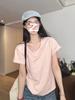 Camiseta Feminina de Verão 2025 Nova Tamanho Grande Top Que Cobre a Carne Simples e Versátil Casual Cor Pura