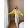 [Bem-estar em Pó para Animais de Estimação] Cardigã Tricotado Protetor Solar de Verão Feminino Novo Decote V Cava Única Manga Longa Top 21260