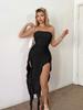 Moda Europeia e Americana Novo Estilo Sexy Personalidade Envolvente Vestido Irregular com Babados Atacado