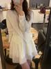 Saia Plissada Branca Estilo Coreano Cintura Elástica Verão 2025 Feminina Emagrecimento Cintura Aparência Textura High-End Saia Curta