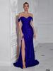 Novo Vestido Longo de Banquete Elegante Tomara que Caia de Cor Sólida Transfronteiriço Europeu e Americano Justo com Fenda Pequena Cauda