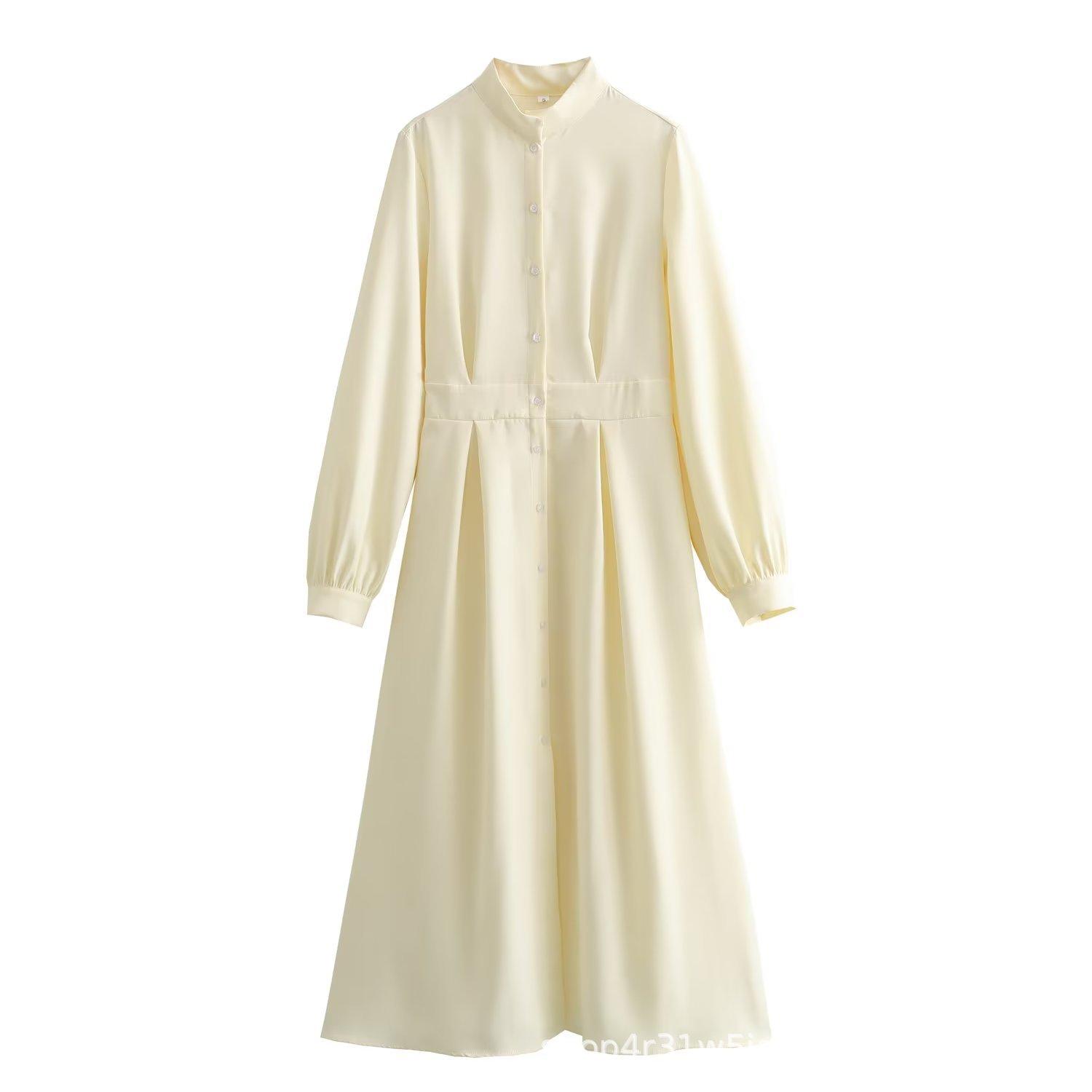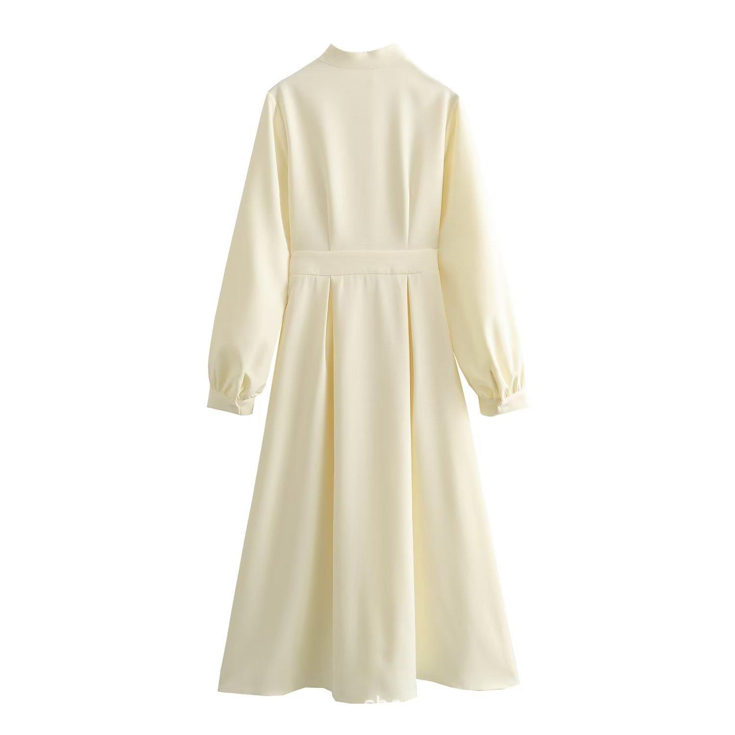 Atacado transfronteiriço Europeu e Americano 2023 outono roupas femininas moda retrô gola alta manga longa modelador vestido com cadarço na cintura
