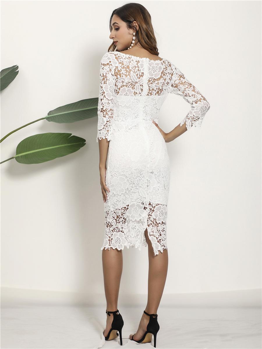 QQH Novo vestido europeu e americano sexy de renda transparente Amazon slim manga longa