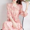 Saia de Seda Floral Francesa Vestido de Seda de Amoreira de Alta Qualidade e Peso Pesado Comprimento Médio Vestido de Manga Comprida Verão Feminino