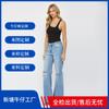 Roupas Femininas Novas Europeias e Americanas Transfronteiriças Recortes Elástico Micro-Boca de Sino Lavado Moda Calças Jeans Femininas Slim