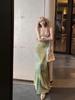 Vestido Sling Verde Claro Vintage Cool Verão Novo Estampado Vestido Longo Elegante Verde Nicho Emagrecedor