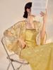 Mint green top, Blue suspender skirt, Lemon yellow